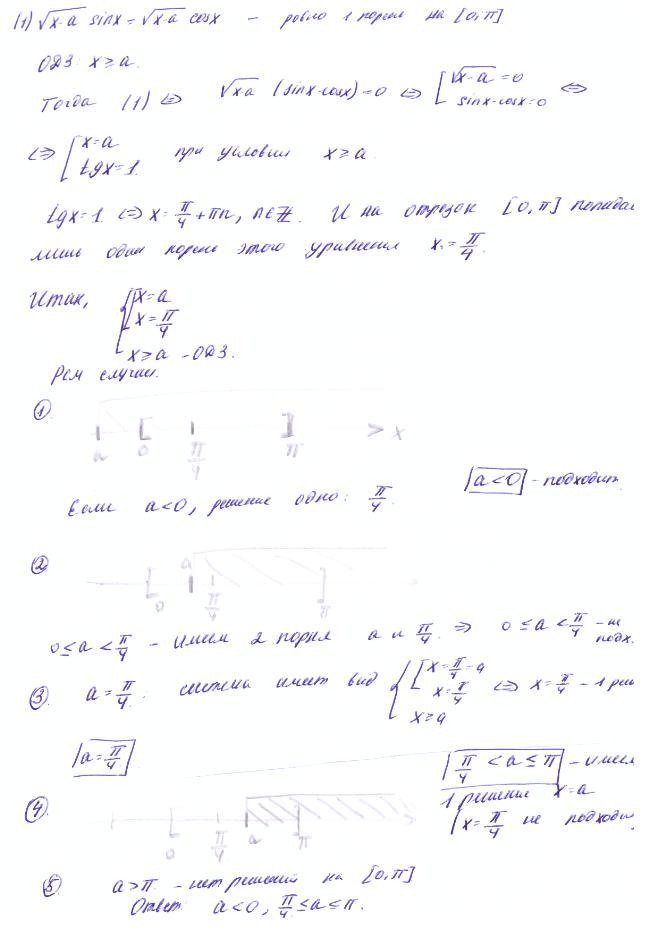Найдите все значения параметра а, при каждом из которых уравнение имеет ровно один корень на отрезке (0;пи)