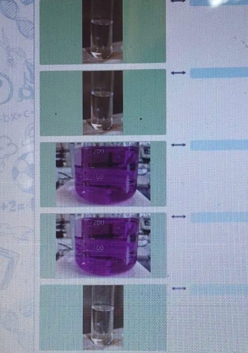 Какие вещества обесцветят фиолетовый раствор перманганата калия, а какие - нет? Соотнесите фото фиолетового раствора с веществом, который не обесцветит данный раствор, и фото прозрачного раствора с веществом, который обесцветит раствор перманганата калия до такого состояния: C7H8 C4H6 C6H6 C2H6 C2H6