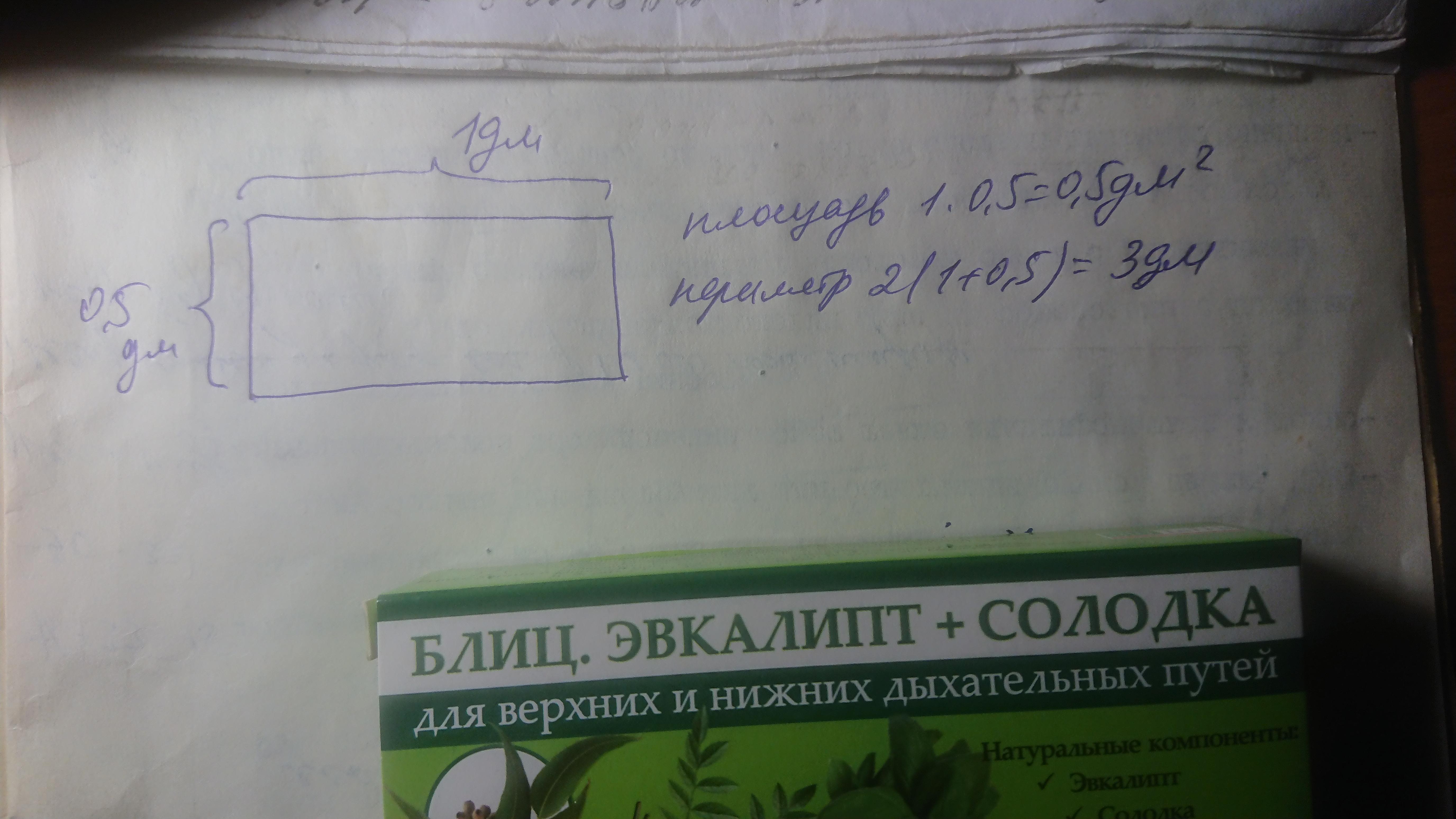 начерти прямоугольник .длинна которого 1 дм.а ширина в 2 раза меньше.высисли периметр и площадь прямоугольника