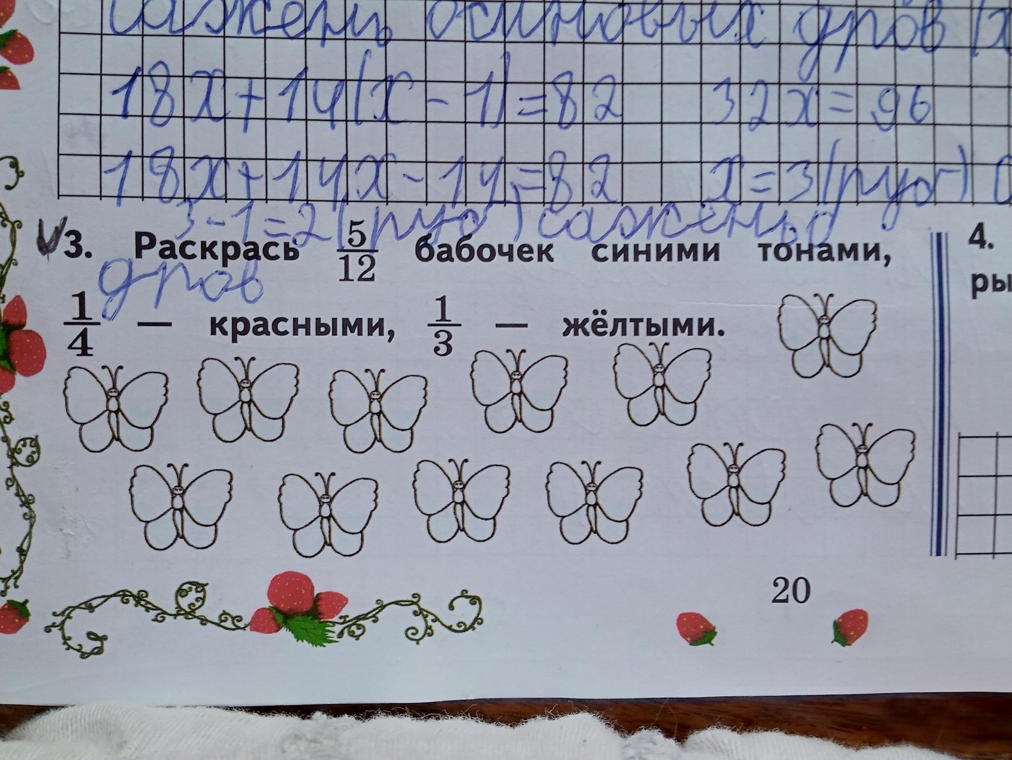 Всего 12 бабочек значит нужно привести дроби к одинаковуму знаменателю.