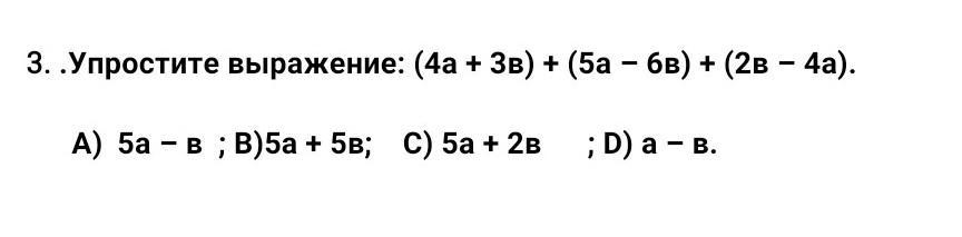 (4a+3b)+(5a-6b)+(2b-4a)= 4a+3b+5a-6b+2b-4a=5a-b