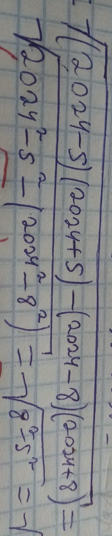Увидел эту запись в одном решении почему во второй строчке (нижней) 2024 в квадрате минус 8 в квадрате записано в скобках в отличие от 2024 в квадрате минус 5 в квадрате?