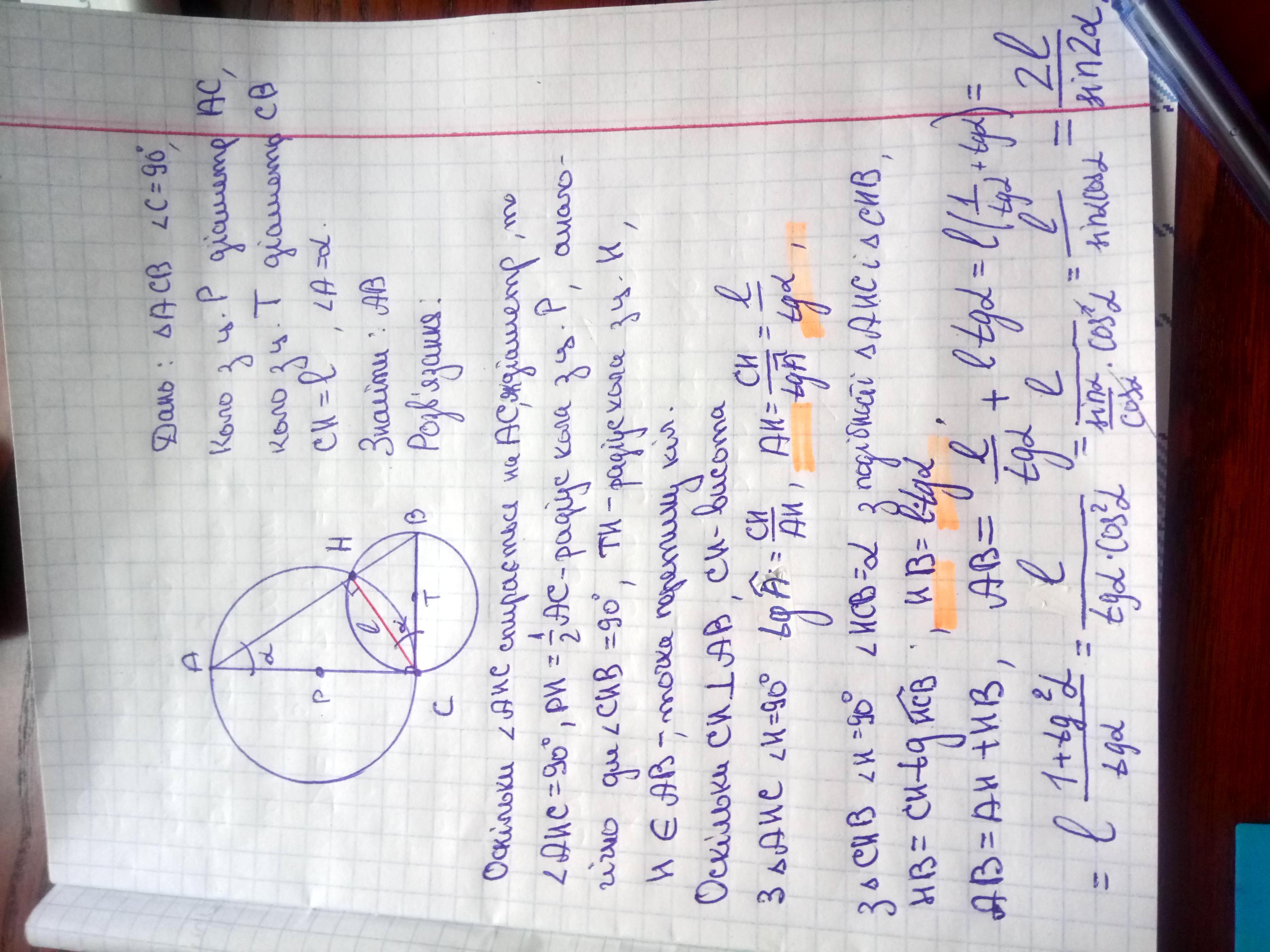 Відстань між точками перетину цих кіл дорівнює Л, а один з гострих кутів трикут-