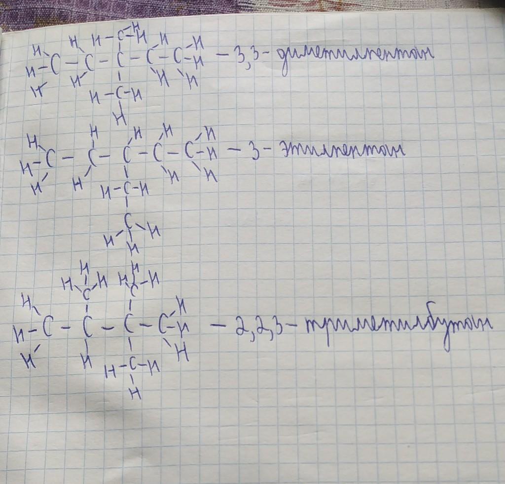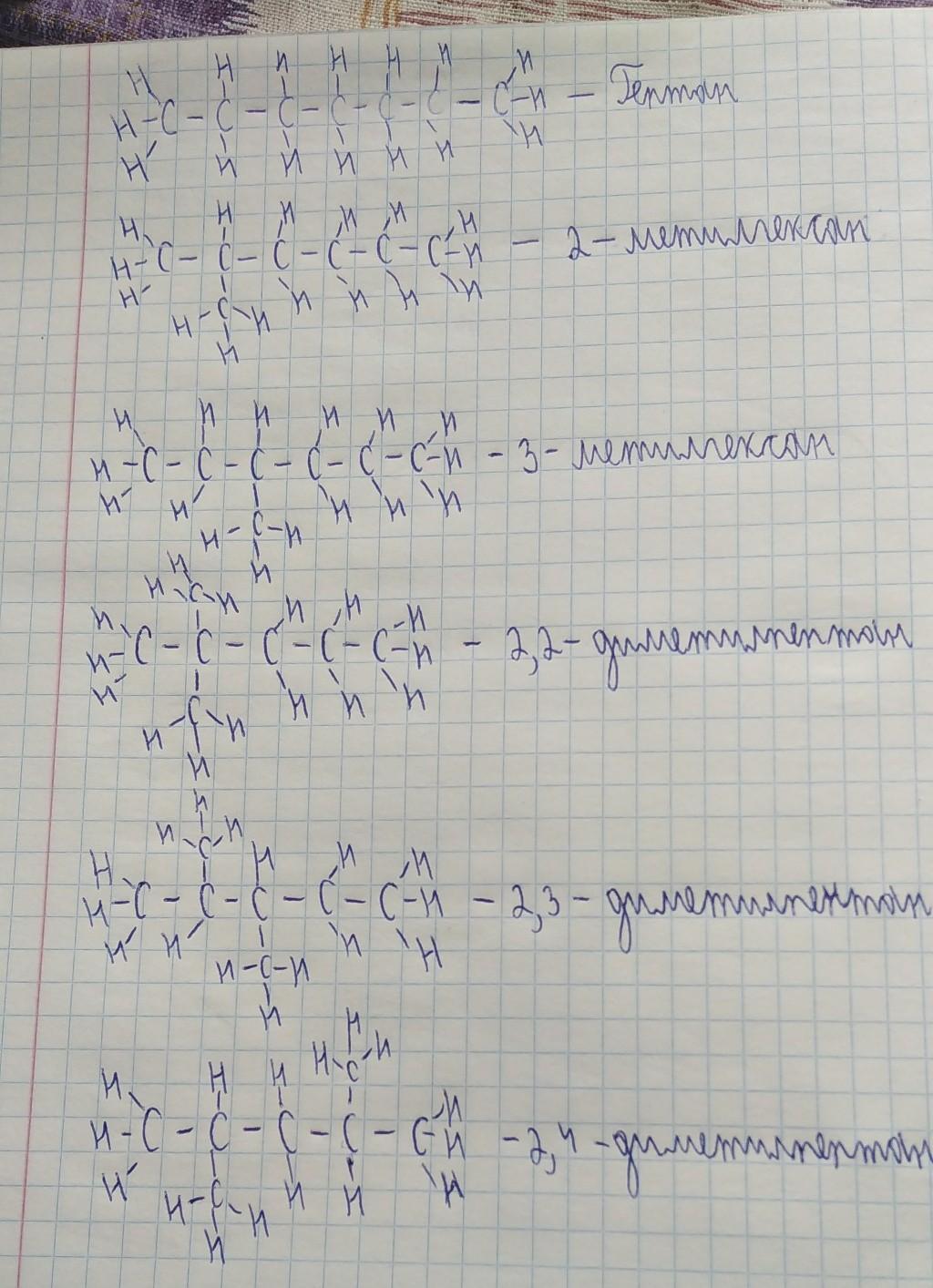 Я нашёл формулы изомеров для гептана, но я не знаю как их правильно записать на бумаге в виде цепочки. (Не краткой формулой как в таблице). Прошу помоги записать все 9.