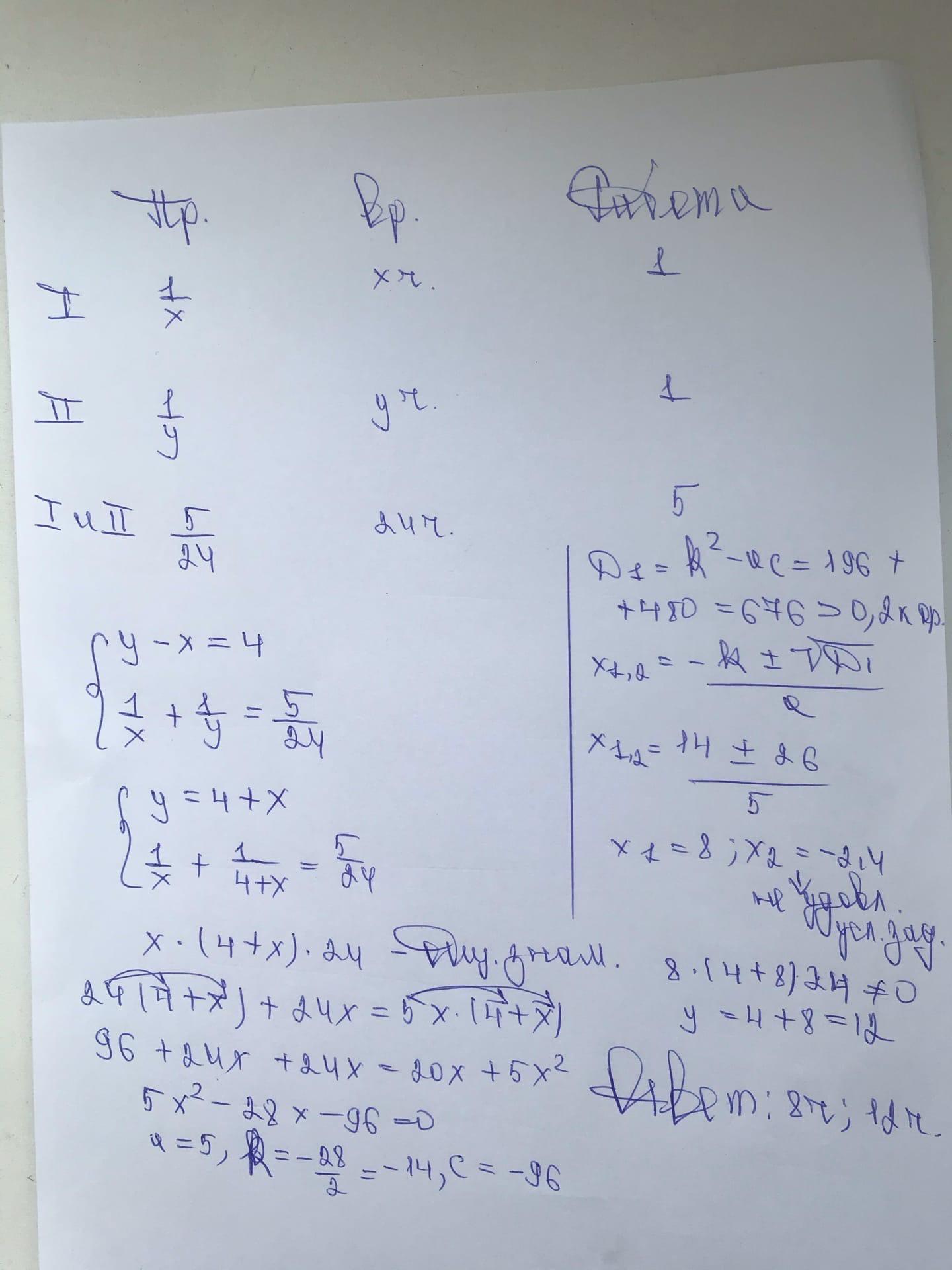 Одна из дорожных бригад может заасфальтировать некоторый участок дороги на 4 часа быстрее. чем другая. За сколько часов может заасфальтировать участок каждая бригада, если известно, что за 24 ч совместной работы они заасфальтировали 5 таких участков?Решать задачу системой уравнения помогите пожалуйста решить без вас я никак