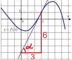 через 2-е выделенные точки касательной достраиваем ее до прямоугольного треугольника и находим тангенс угла альфа