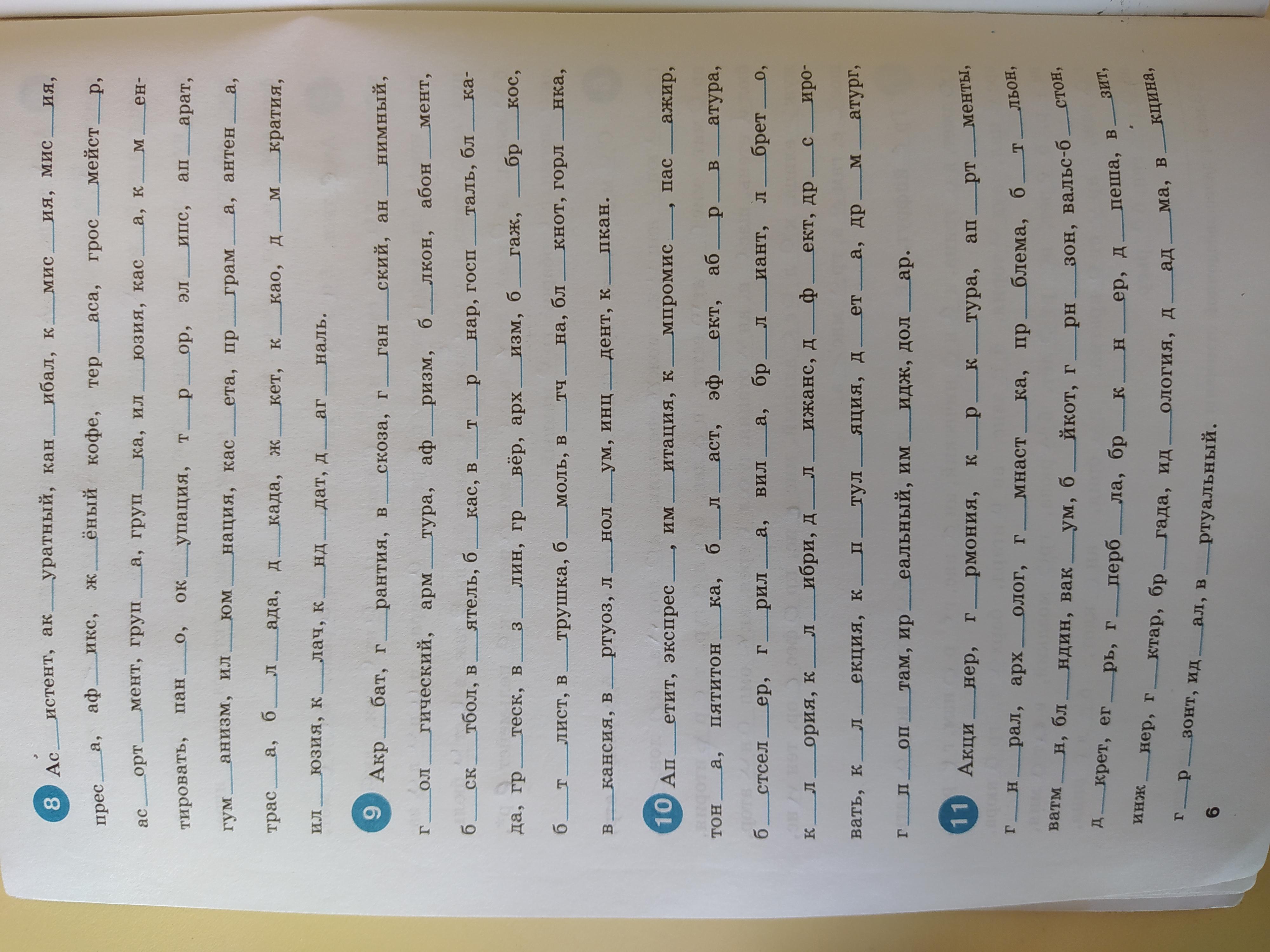 9.акробат, гарантия, вискоза, гигантский, анонимный, геологический, арматура, афоризм, балкон, абонемент, баскетбол, веятель, бекас, ветеринар, госпиталь, блокада, гротеск, вазелин, гравер, архаизм, багаж, абрикос, баталист, ватрушка, бемоль, ветчина, блокнот, горлянка, вакансия, виртуоз, линолеум, инцидент, капкан.