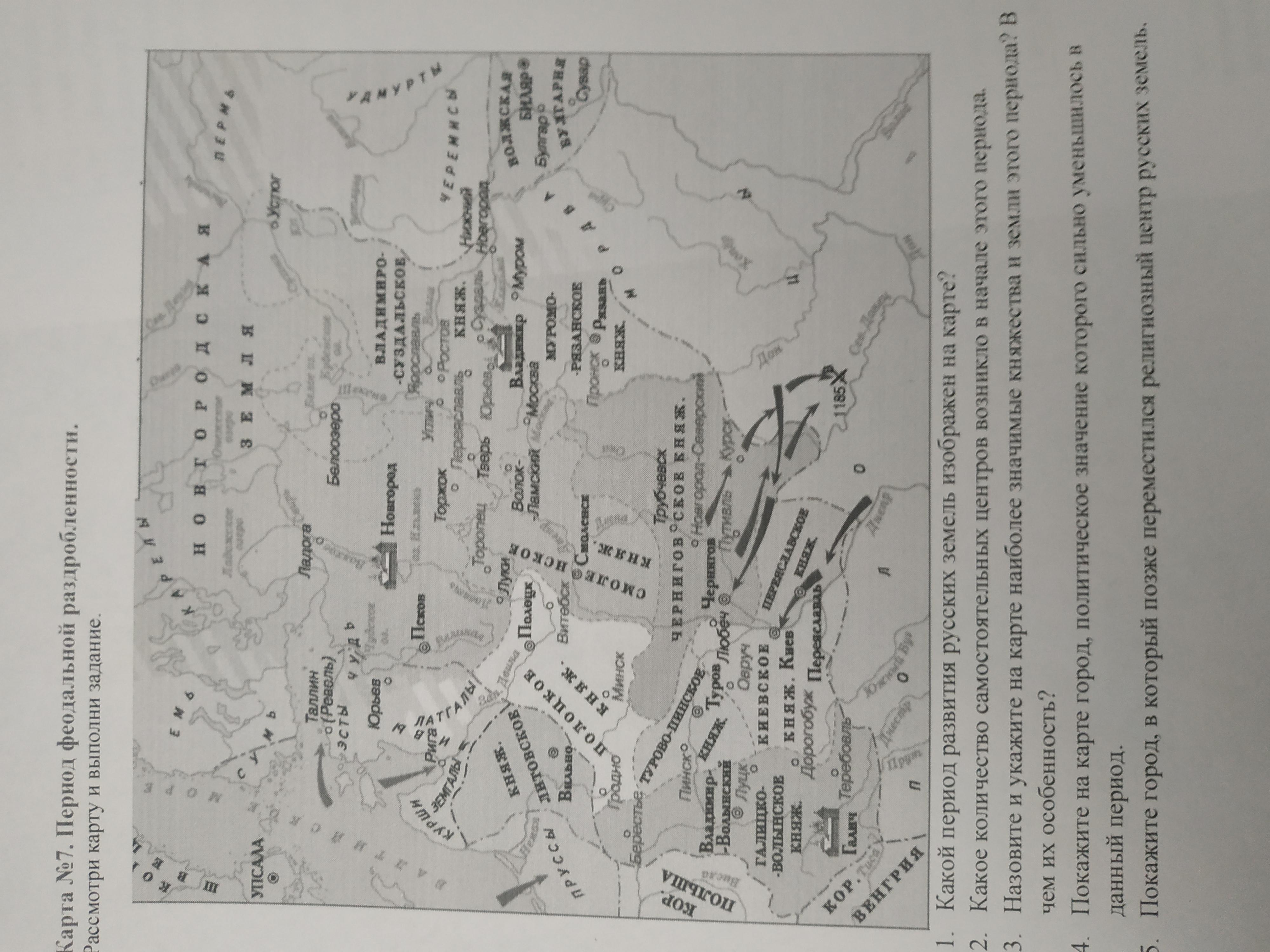 1. На карте изображена Русь в период раздробленности (1132-1236 гг.)