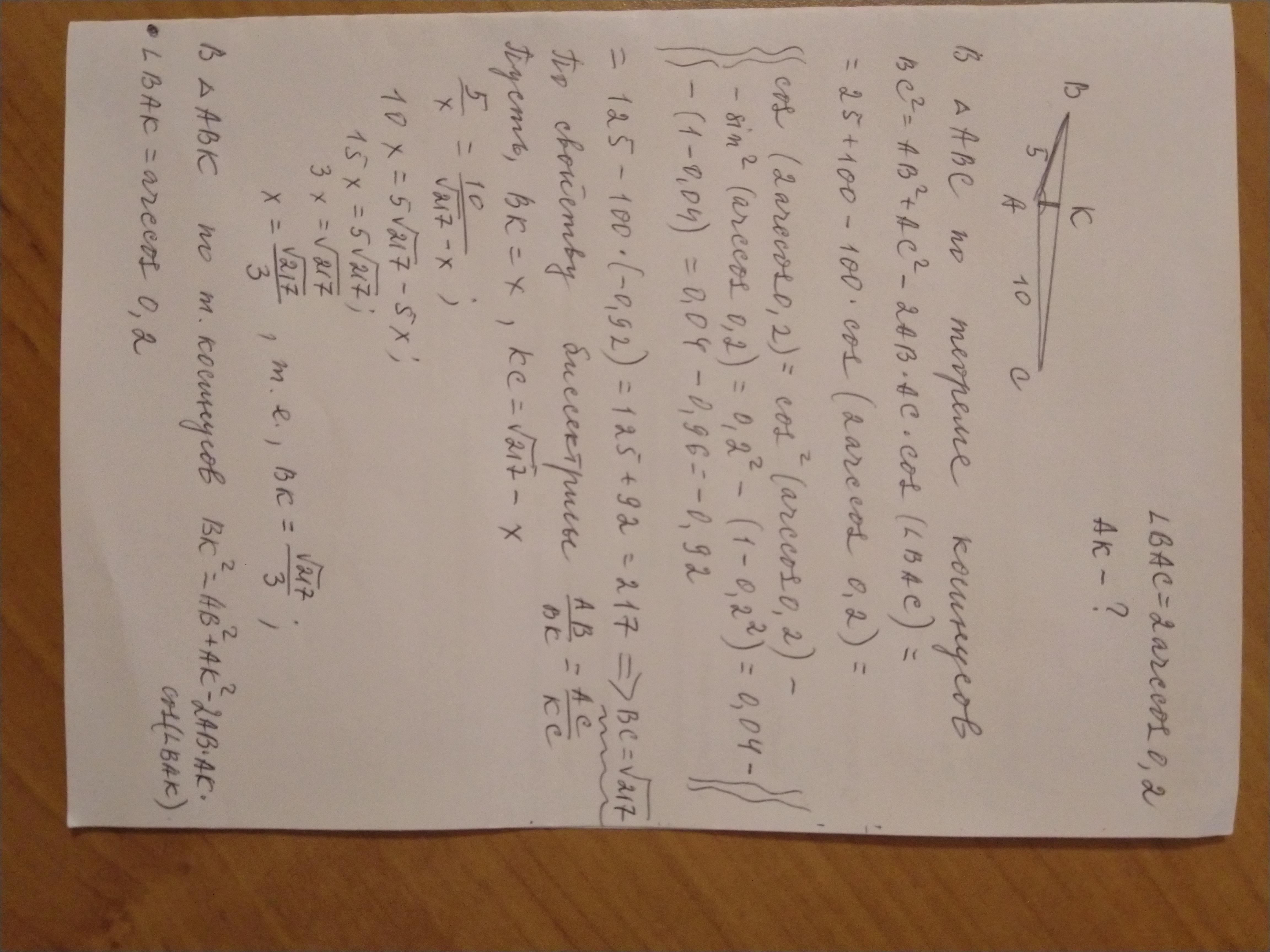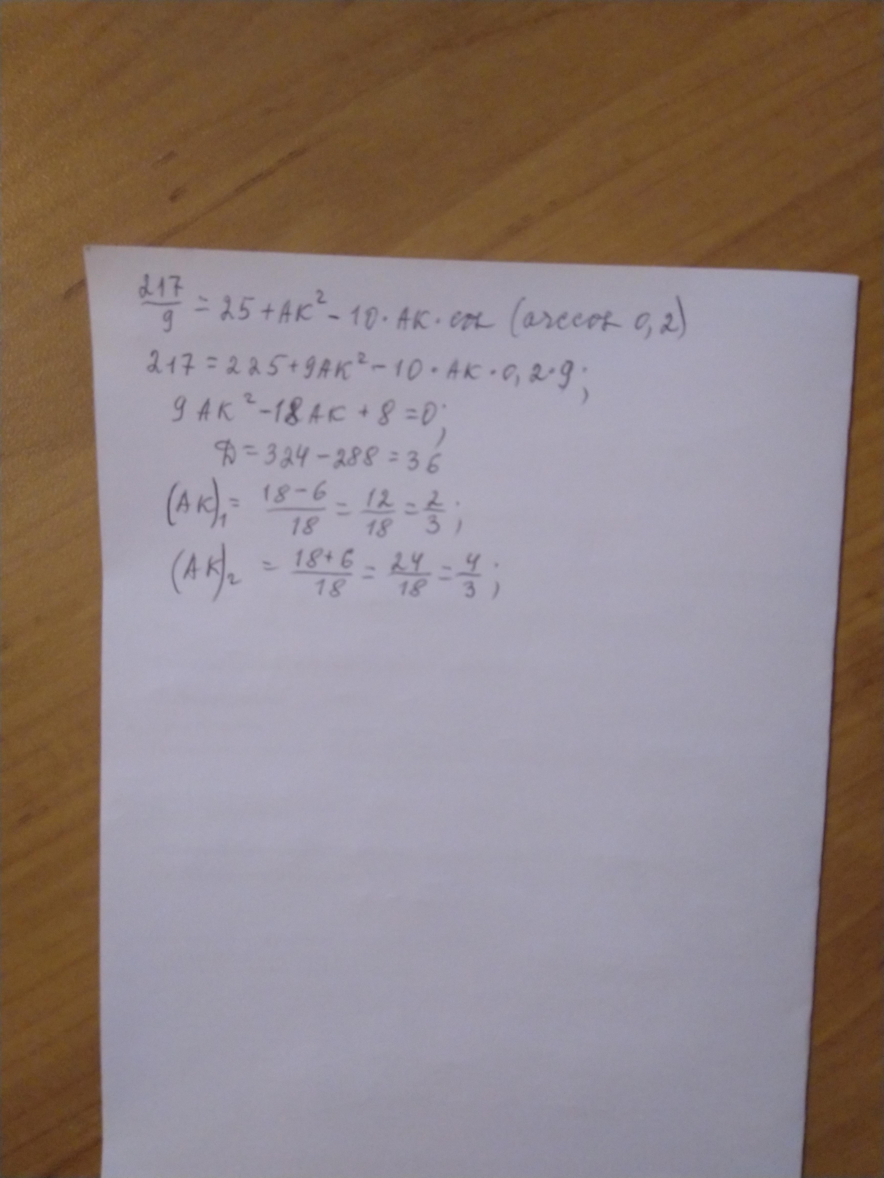 треуг.АВК:217/9=25+4/9-2*5*(2/3)*0,2
