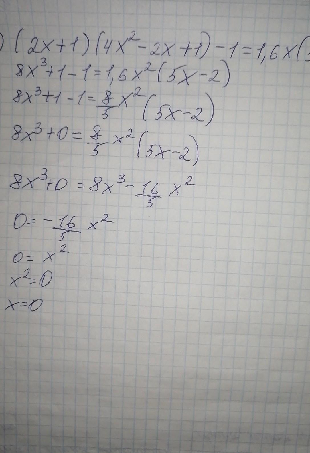 г) (2x + 1) (4х2 – 2х + 1) – 1 = 1,6x? (5х – 2).
