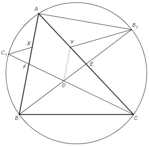 ∠EDC=∠FDB (вертикальные) => ∠CYB₁=∠BXC₁