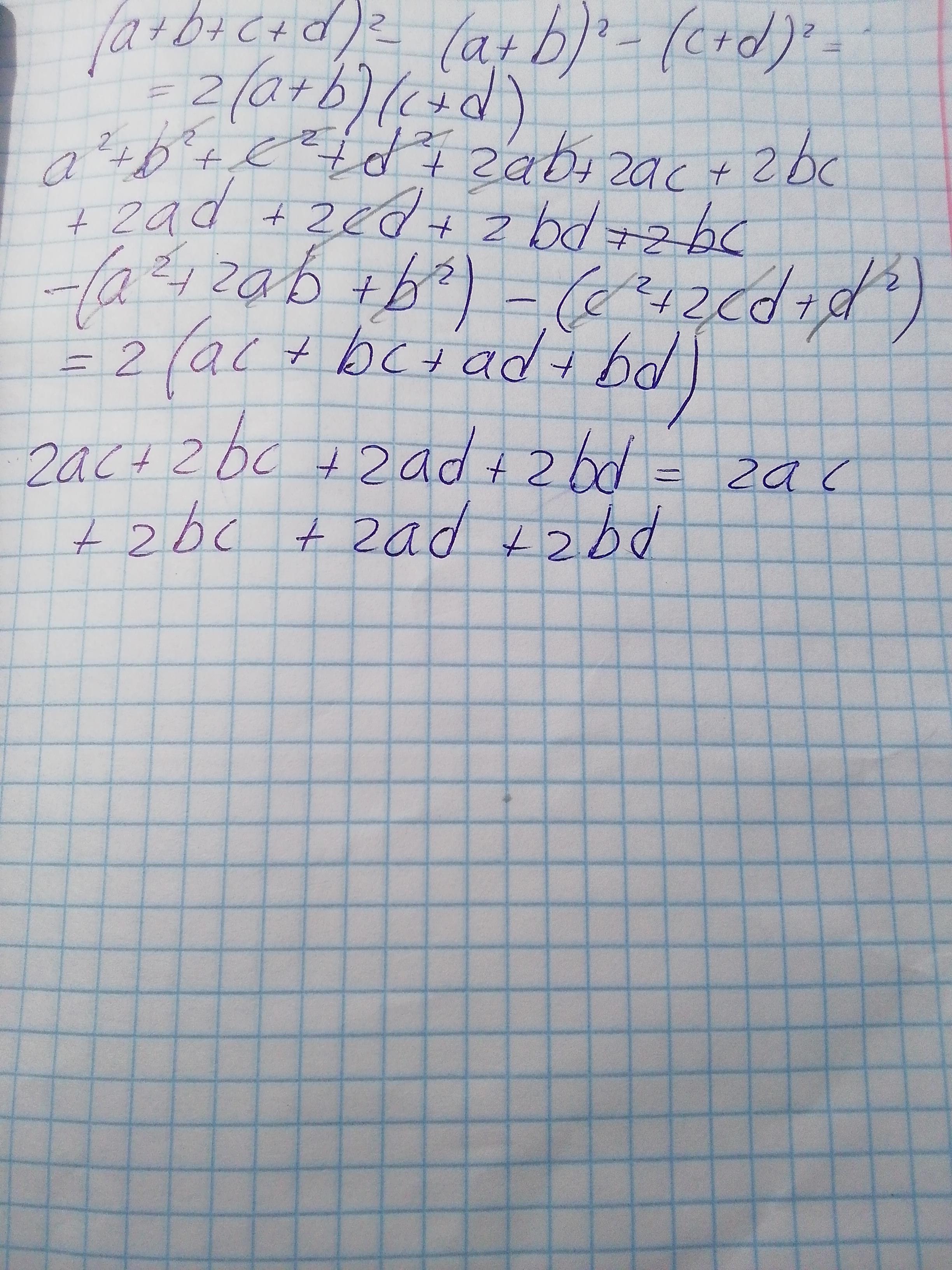 (a+b+c+d)^2 -(a+b)^2 -(c+d)^2 = 2*(a+b)*(c+d)