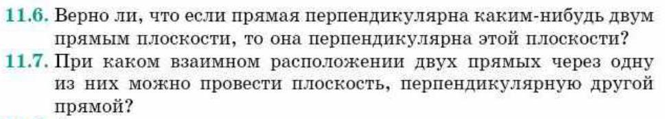 11.6 Не верно. Прямая параллельна плоскости, если она перпендикулярна двум пересекающимся прямым этой плоскости.