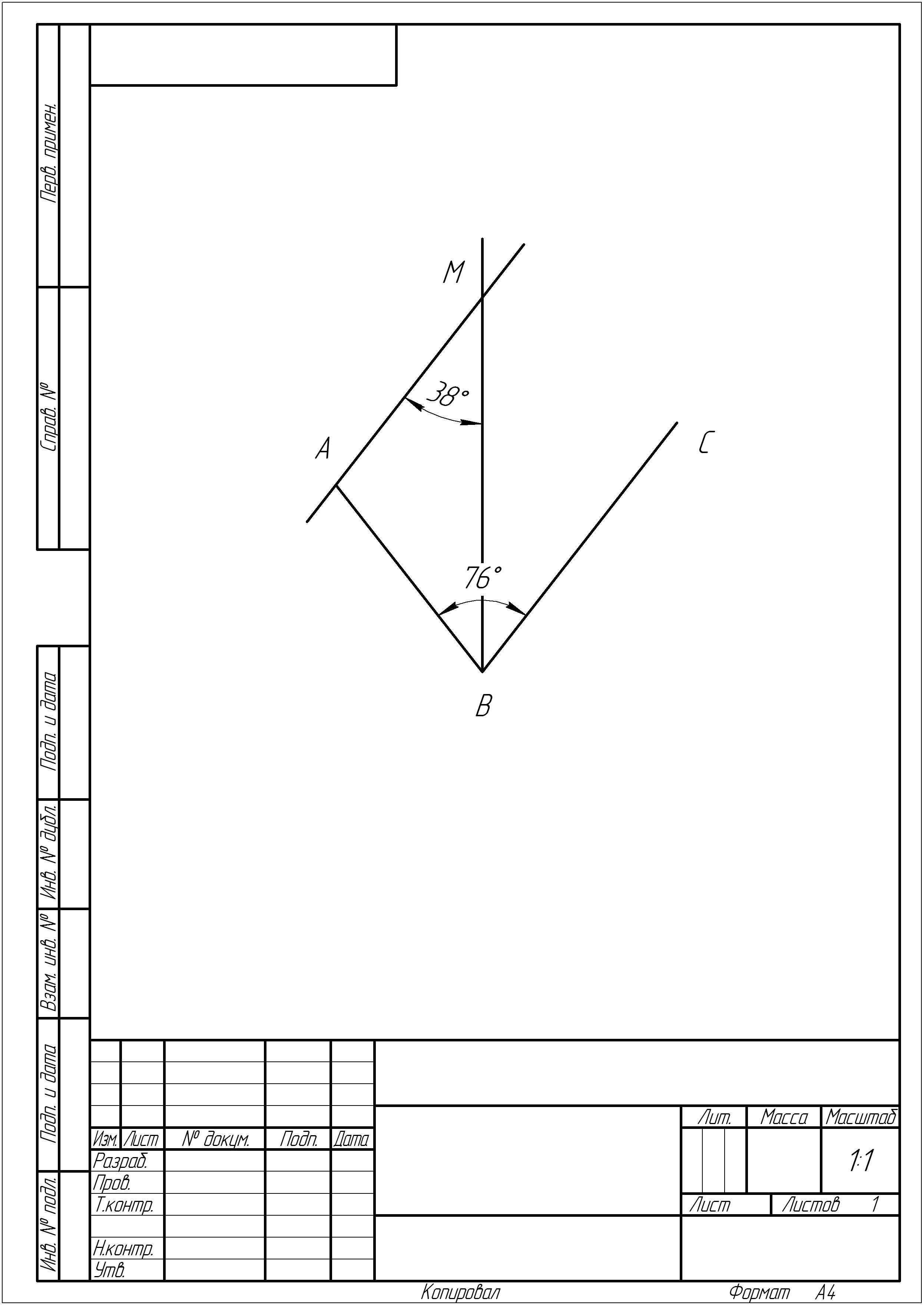 угол ABM равен 38⁰ т.к. BM биссектриса угла ABC и делит его пополам, а угол ABC собственно равен 76⁰