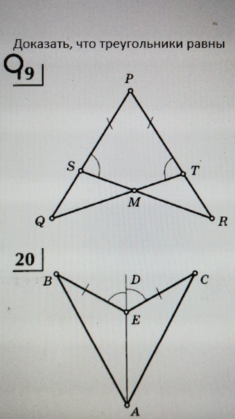 19) ∠SMQ = ∠ TMR; ∠MSQ = ∠MTR = 180° - ∠PSM ⇒∠SQM = ∠TRM (ΔSQM подобен ΔMTR, по 3-ём углам)