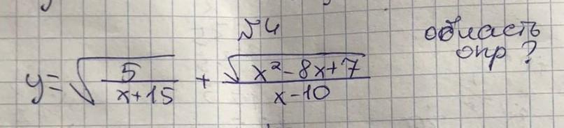 Ответ: D(y)=(-15;1]U[7;10)U(10;∞).