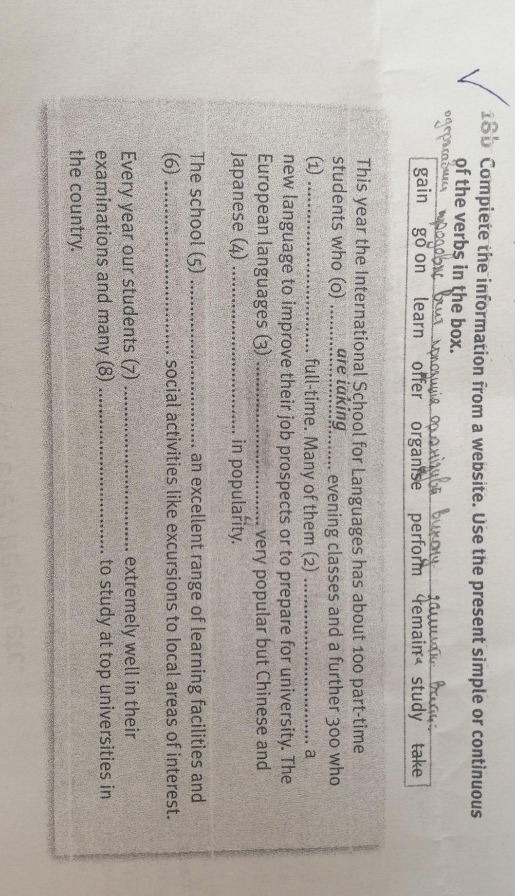 students who (0) are taking evening classes and a further 300 who (1) are studying full-time. Many of them (2) are learning a new language to improve their job prospects or to prepare for university. The European languages (3) remain very popular but Chinese and Japanese (4) are gaining in popularity.