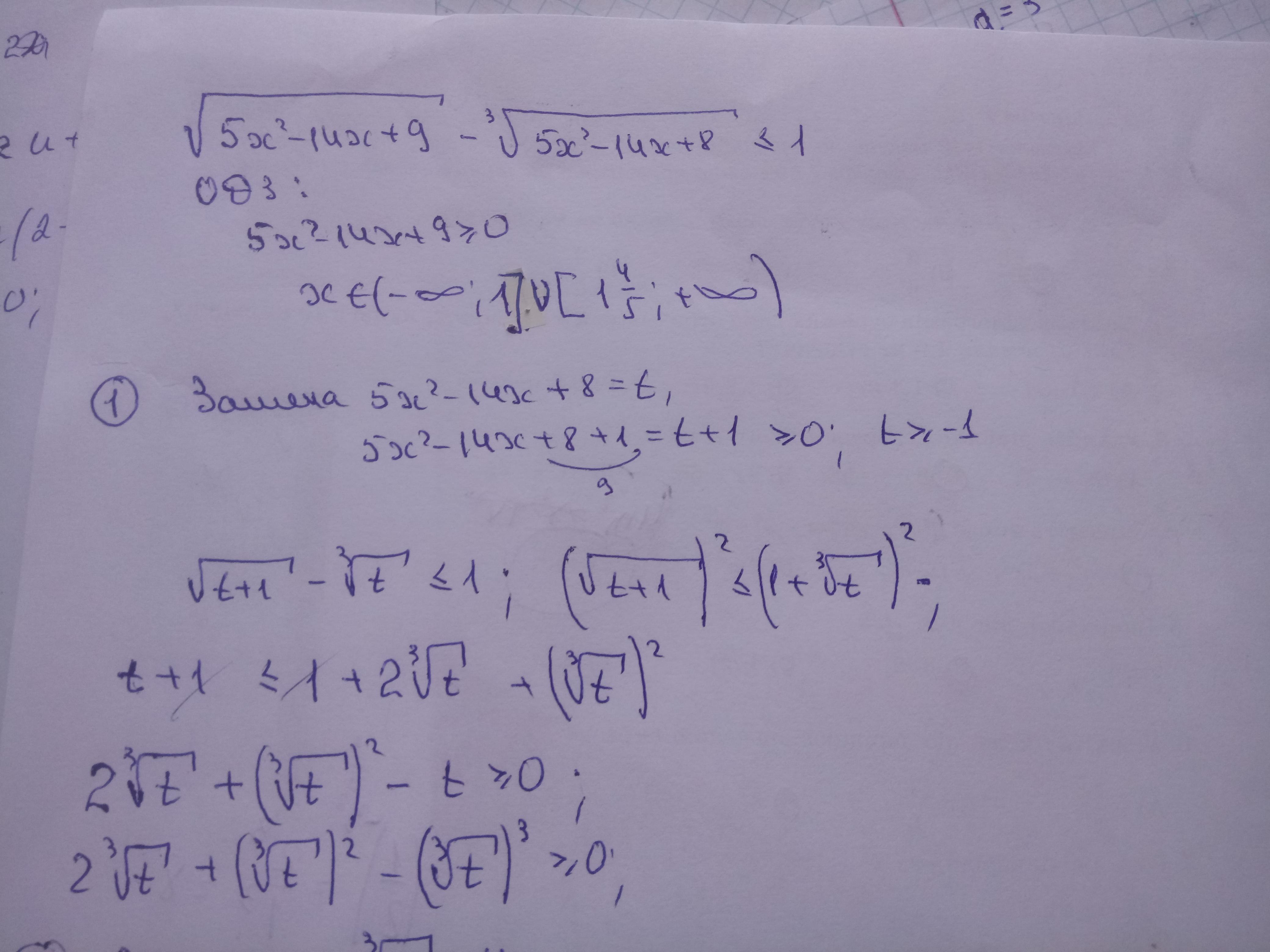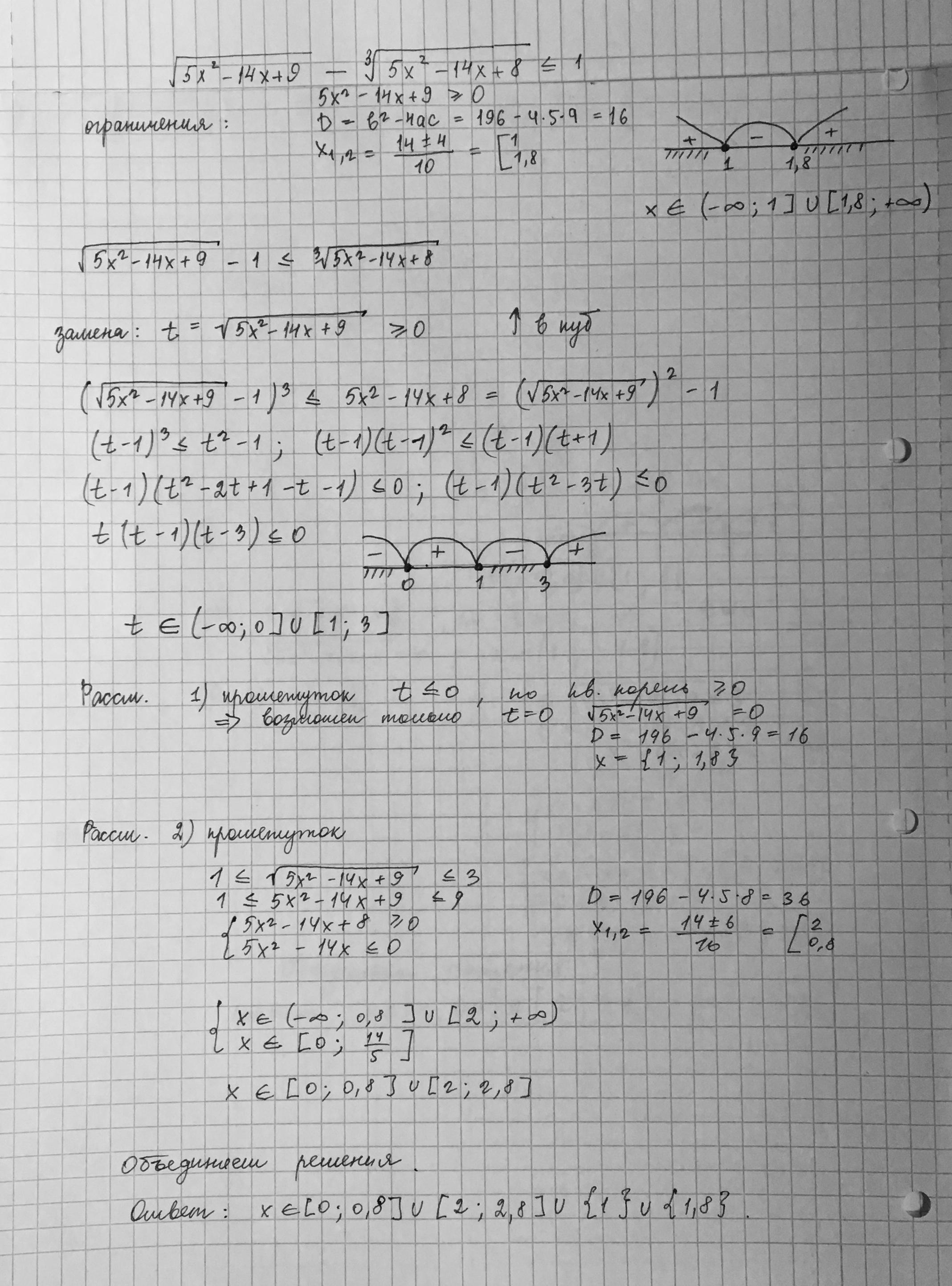 sqrt(5x^2- 14x + 9) - (5x^2 - 14x + 8 ) <= 5x^2 - 14x + 9 - (5x^2-14x+8)