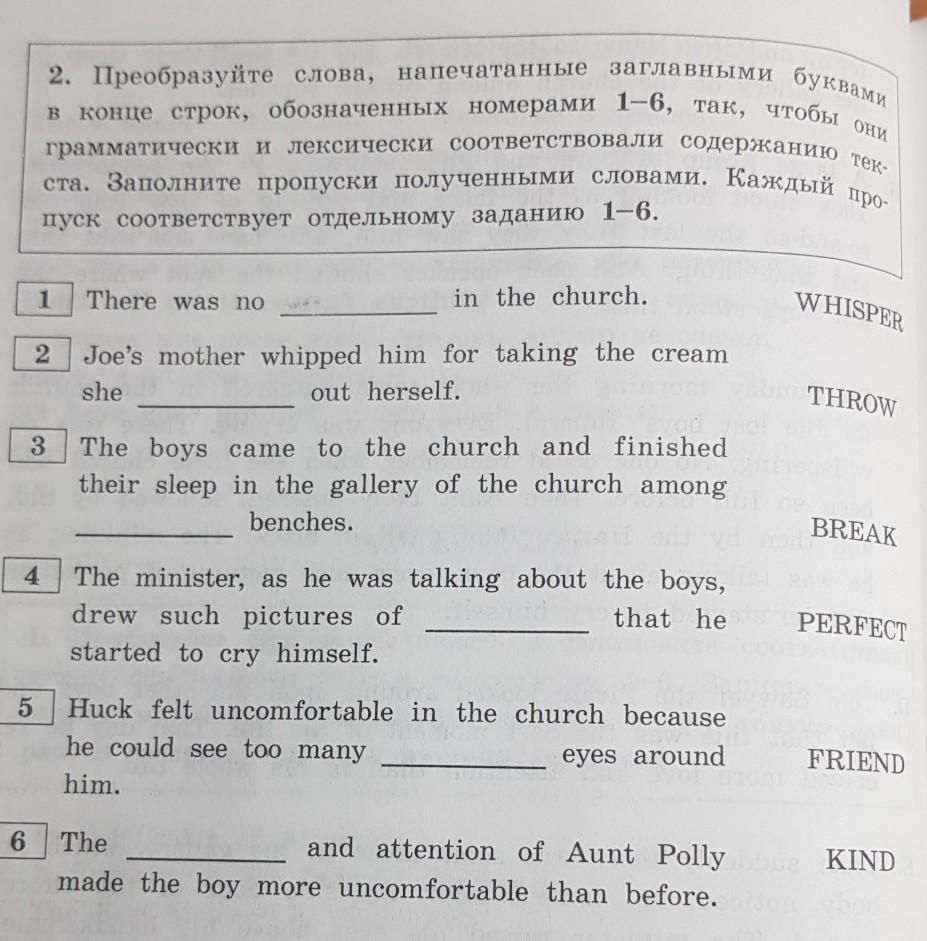 Преобразуйте слова, напечатанные заглавными буквами в конце строк, обозначенных номерами 1-6, так, чтобы они грамматически и лексически соответствали содержанию текста.