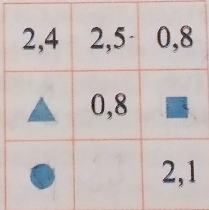 В таблице ниже, если сумма десятичных знаков по горизонтали и вертикали равна друг другу, найдите сумму ⬛ + ⚫.