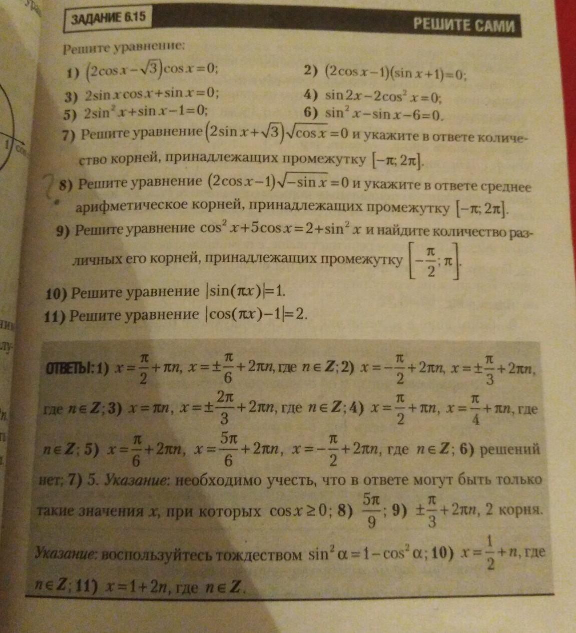 2cosx-1=0 или √(-sinx)=0