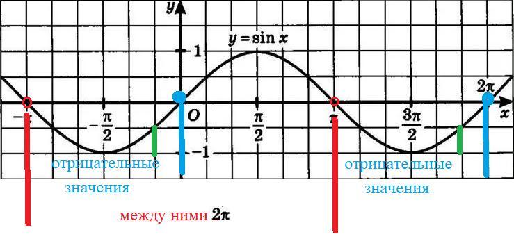 -π+ 2πk ≤x ≤2πk, k ∈Z ( т.е в 3 или 4 четвертях) ( cм рисунок)