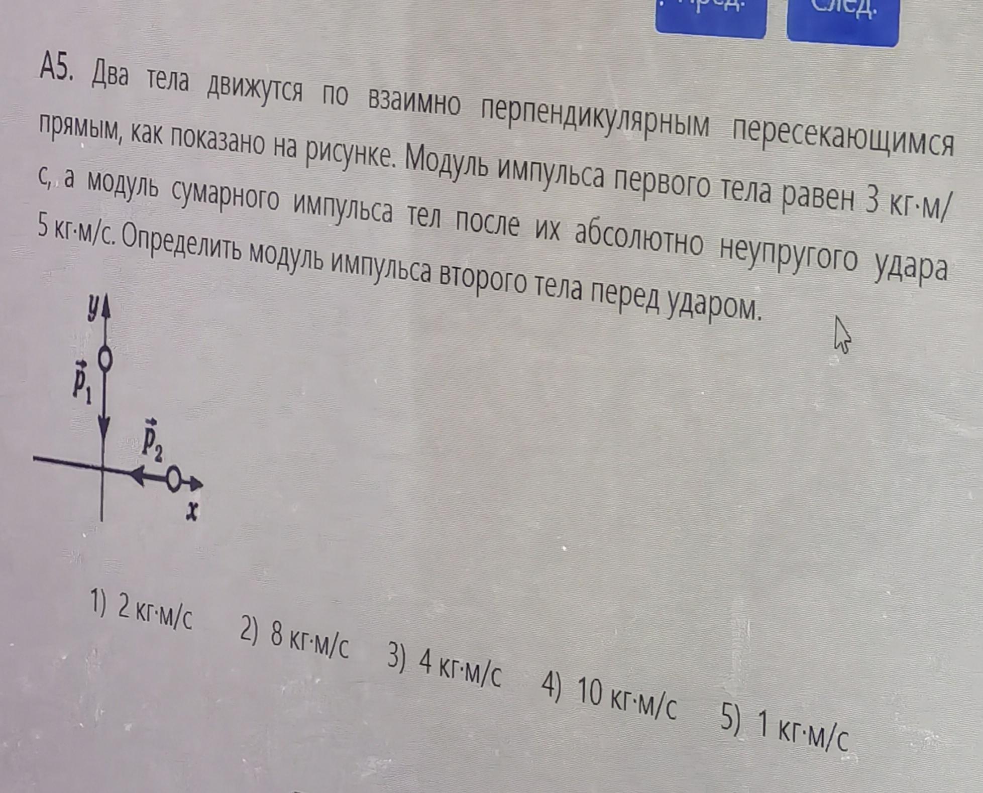 p₂ = √ (5² - 3²) = √ (25-9) = √ (16) = 4 кг·м/с