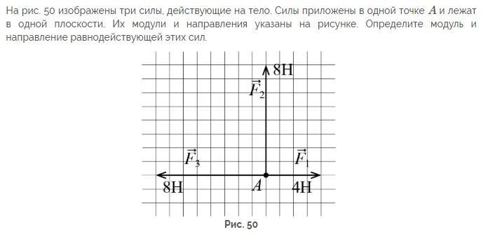 Вектора F₁₃ и F₂ расположены под углом 90° друг к другу. Для нахождения модуля суммы применим способ треугольника. Модуль суммарного вектора l F₁₃₂ l найдем по теореме Пифагора:
