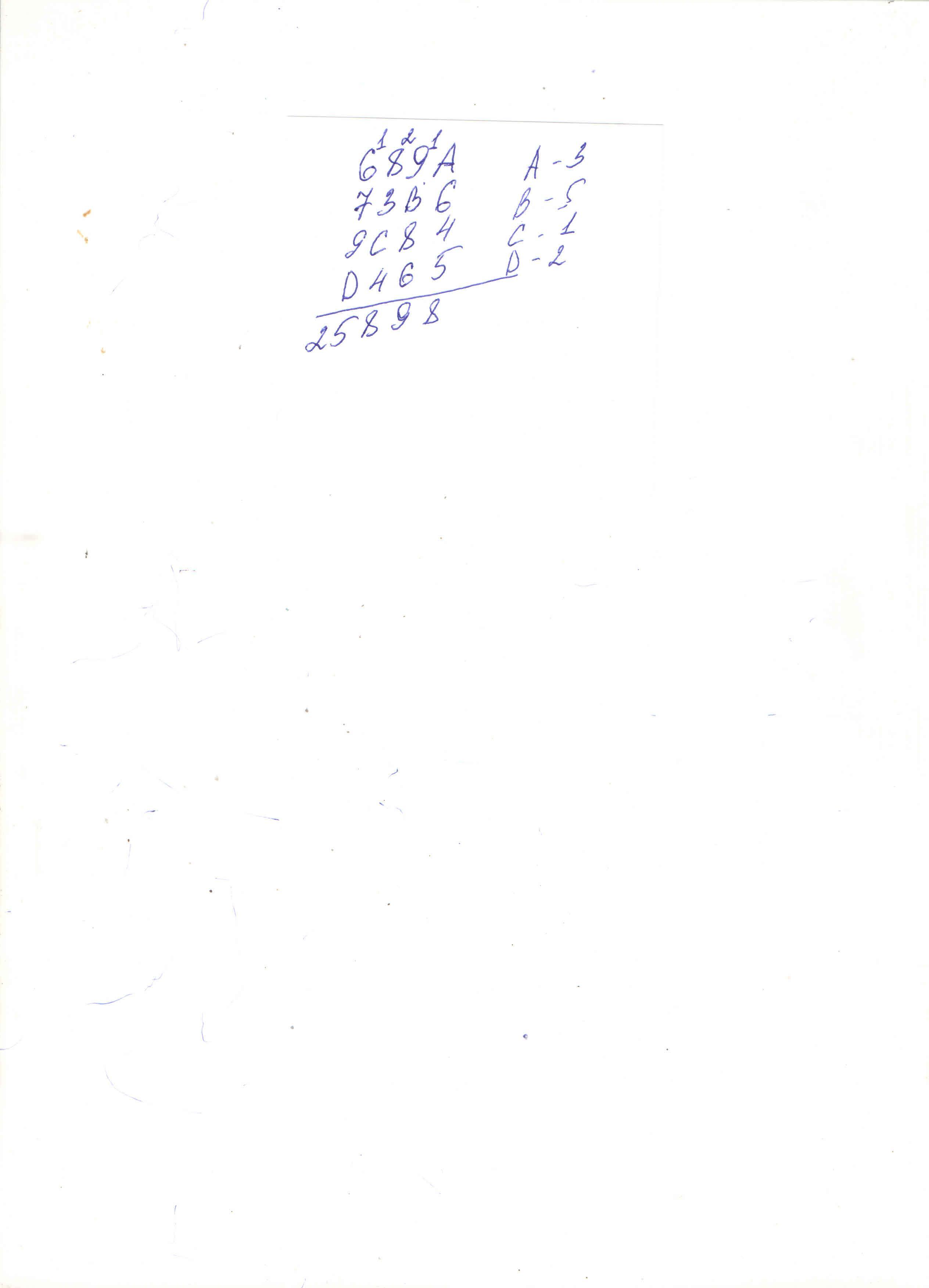 Найдите сумму A + B + C + D в каждом из выражений 689A+ 73B6+ 9C84+D465=25.898