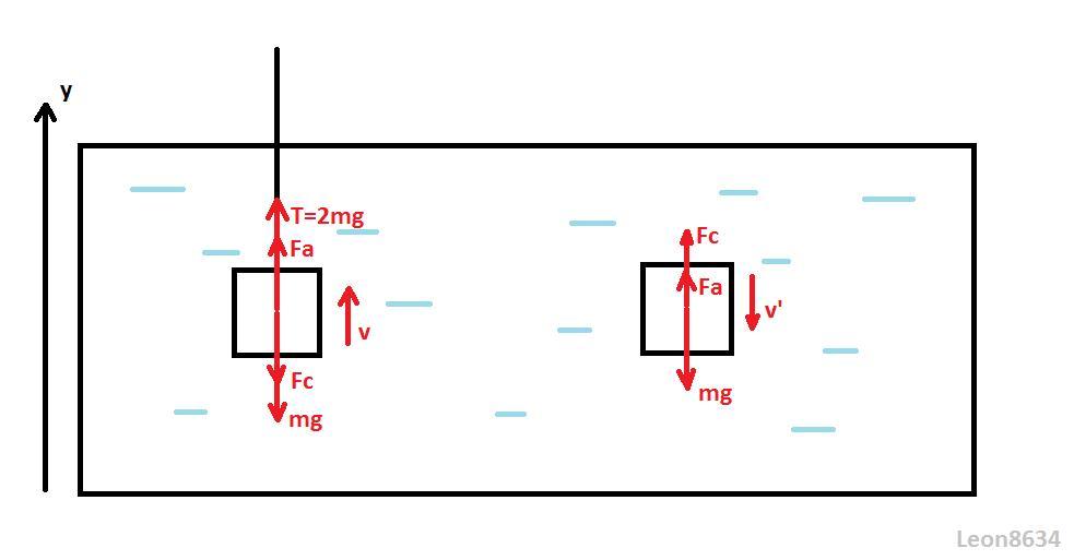 Помогите, пожаалуйста С глубины озера с помощью легкого троса поднимают тело массы m = 20 кг с постоянной скоростью v =10 см/с . При этом сила натяжения троса в два раза больше mg. Сила сопротивления прямо пропорциональна величине скорости. Какова будет установившаяся скорость погружения тела в случае обрыва троса, если плотность поднимаемого тела в четыре раза больше плотности воды. Ответ приведите в м/с. Ускорение свободного падения принять g=10 м/с2, давление столба воды не учитывать.