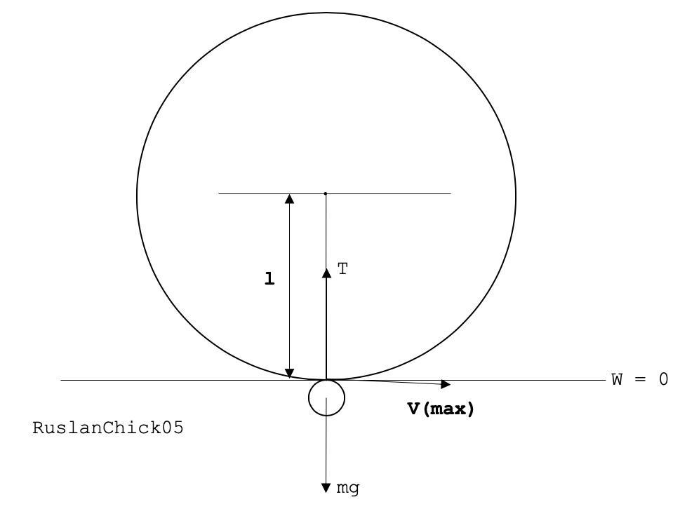 1. Очевидно, что максимальная скорость будет тогда, когда потенциальная энергия данной системы, состоящей из шарика будет минимальна, чтобы этого добиться нужно выбрать за 0 потенциальную энергию этой системы в самой низкой точке траектории.