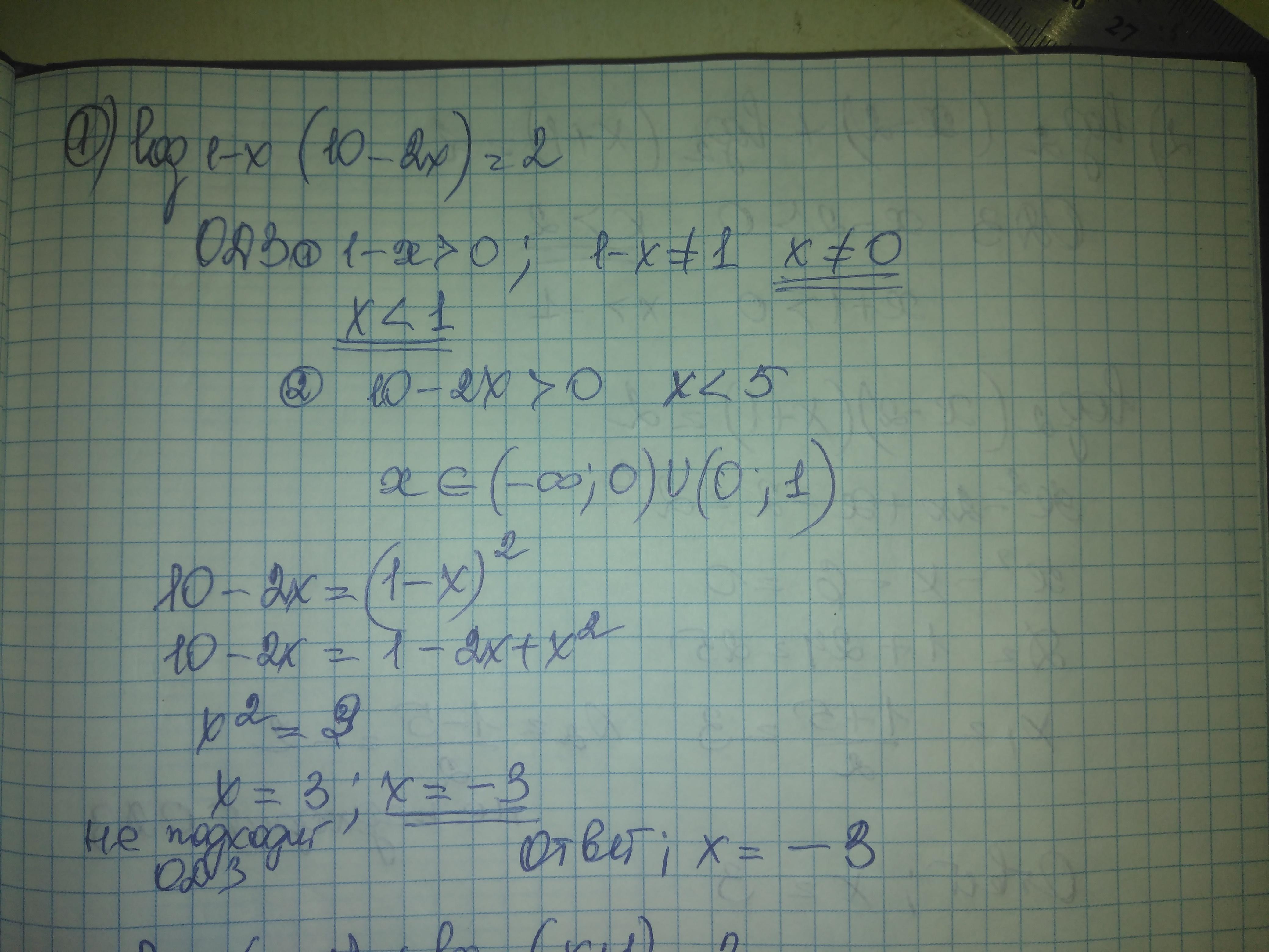 log1-x(10-2x) = 2, x € { - ∞, 0} U {0, 1}