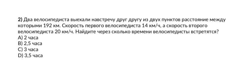 которыми 192 км. Скорость первого велосипедиста 14 км/ч, а скорость второго