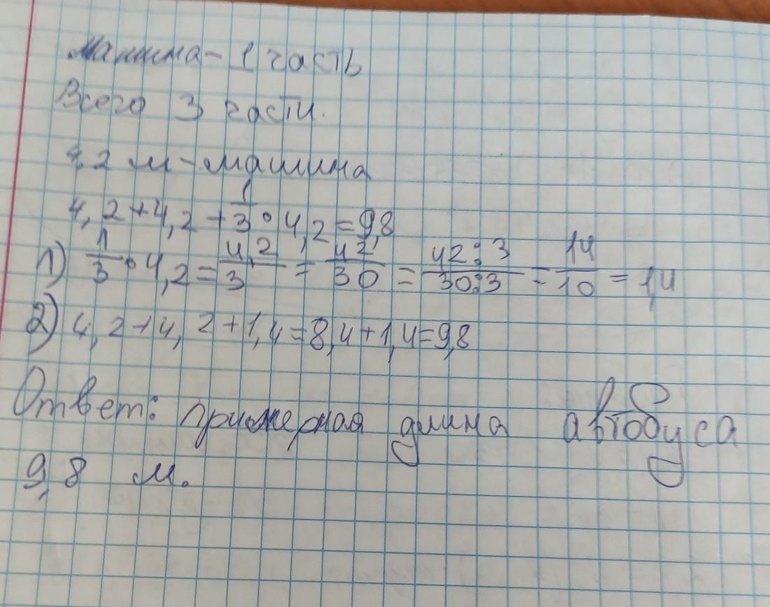 Ответ: автобус примерно в 2 раза длиннее, его длина составит 2*4,2=8,4 метра=840 см.
