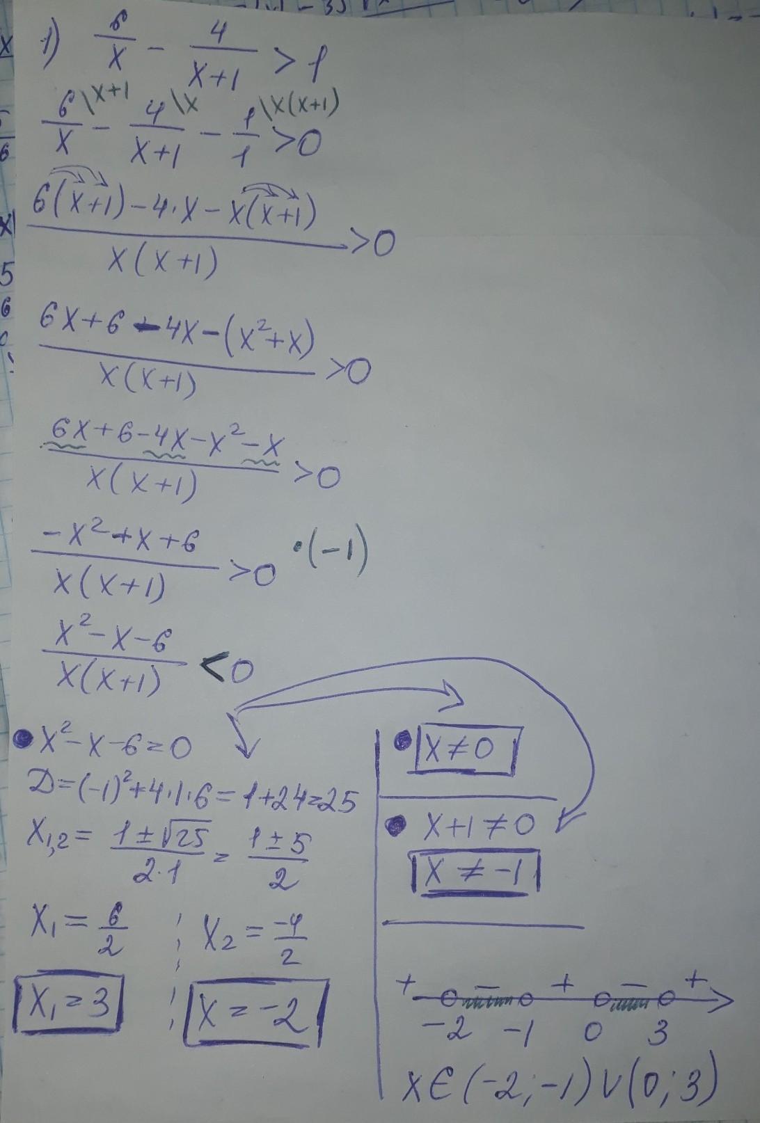 6/x- 4/(x+1) >1