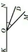 Промінь OD є бісектрисою кута MON, зображеного на рисунку, ∠MON = 46°, ∠KON — розгорнутий. Знайдіть