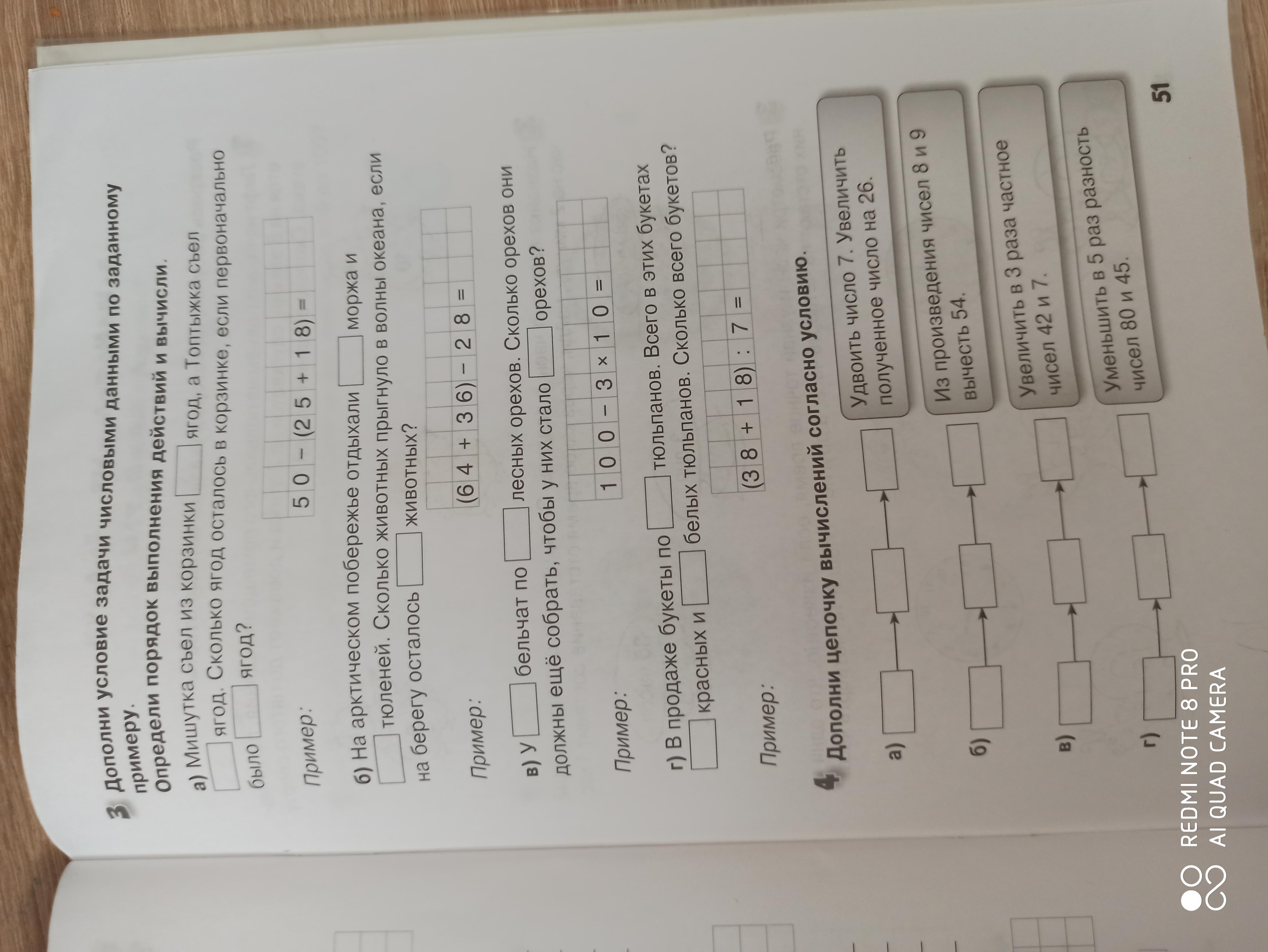 г) В продаже букеты по 7 тюльпанов. Всего в этих букетах 38 красных и 18 белых тюльпанов. Сколько всего букетов? (38+18):7=8