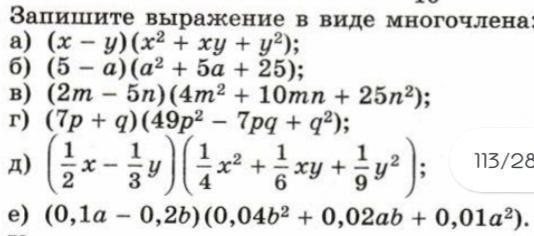 д) (х/2)³- (y/3)³ => x³/8 - y³/27