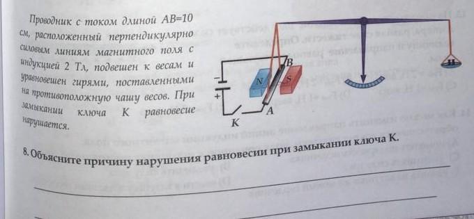 По правилу левой руки на проводник с током в магнитном поле будет действовать сила Ампера, направленная вниз. Весы выйдут из равновесия.