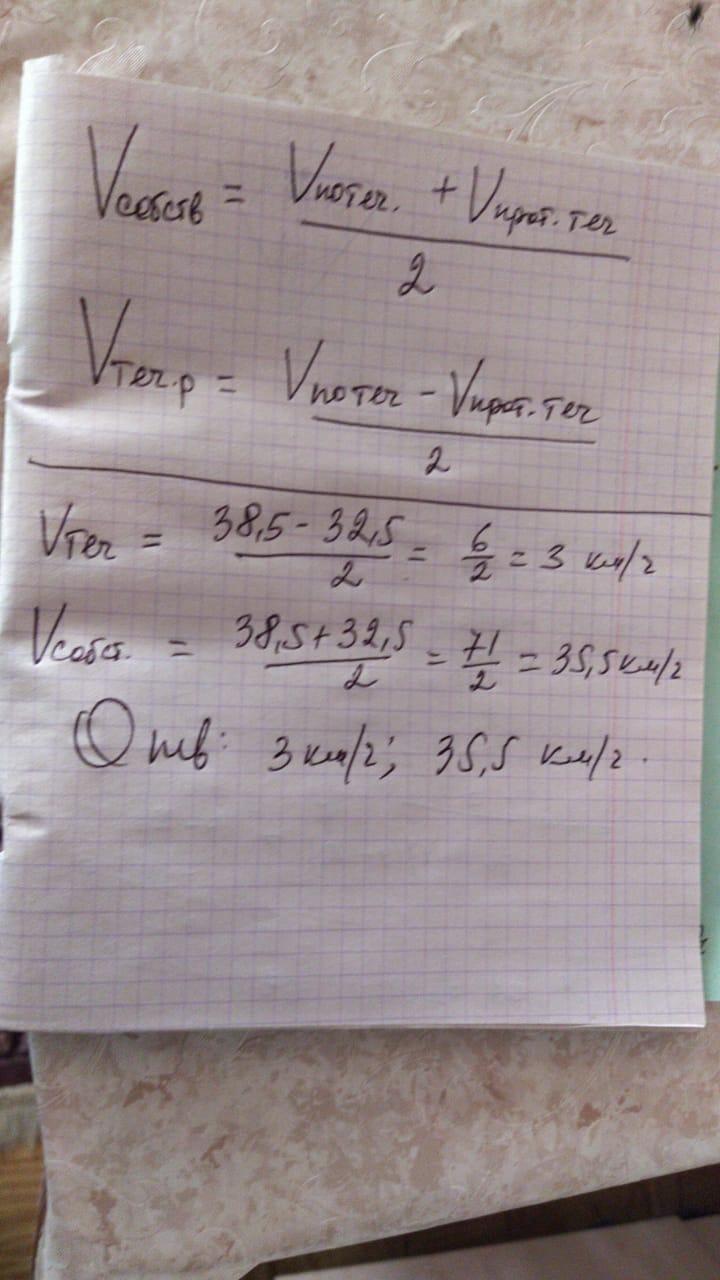 2) (38,5 - 32,5):2 =3 (км) - скорость течения реки