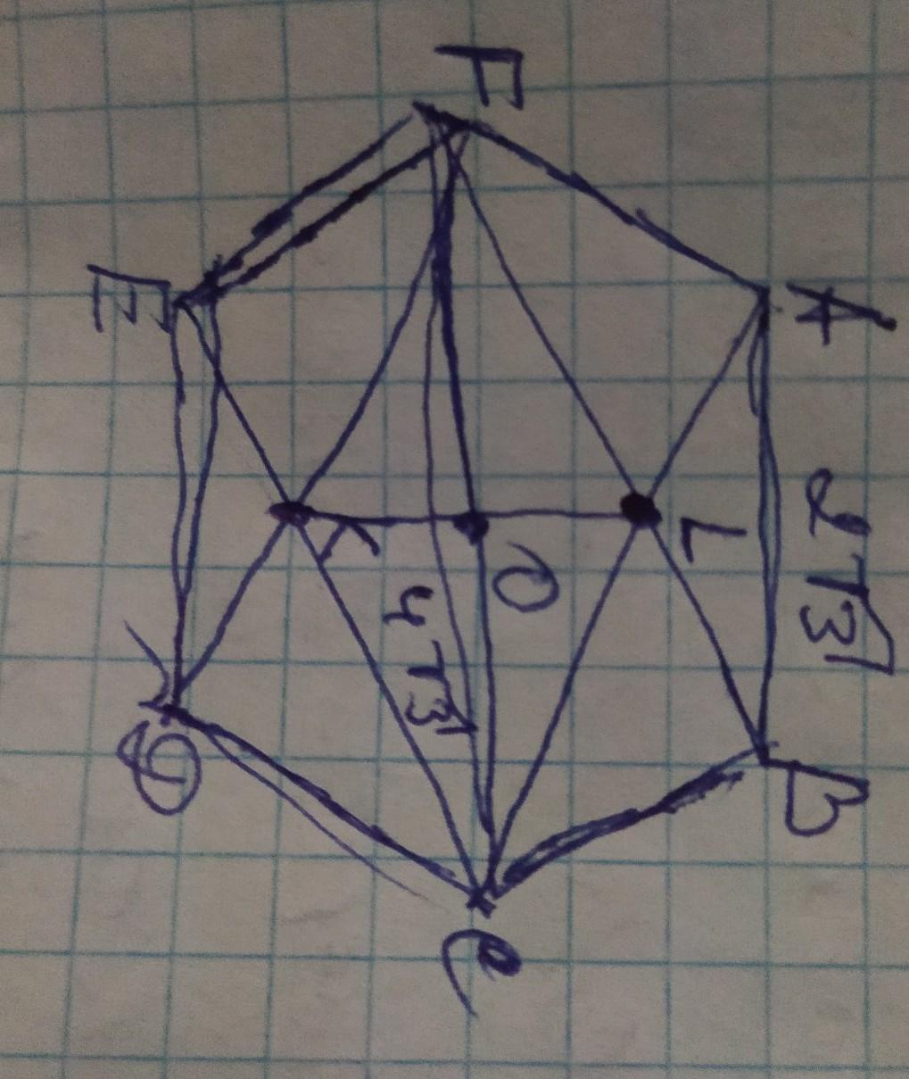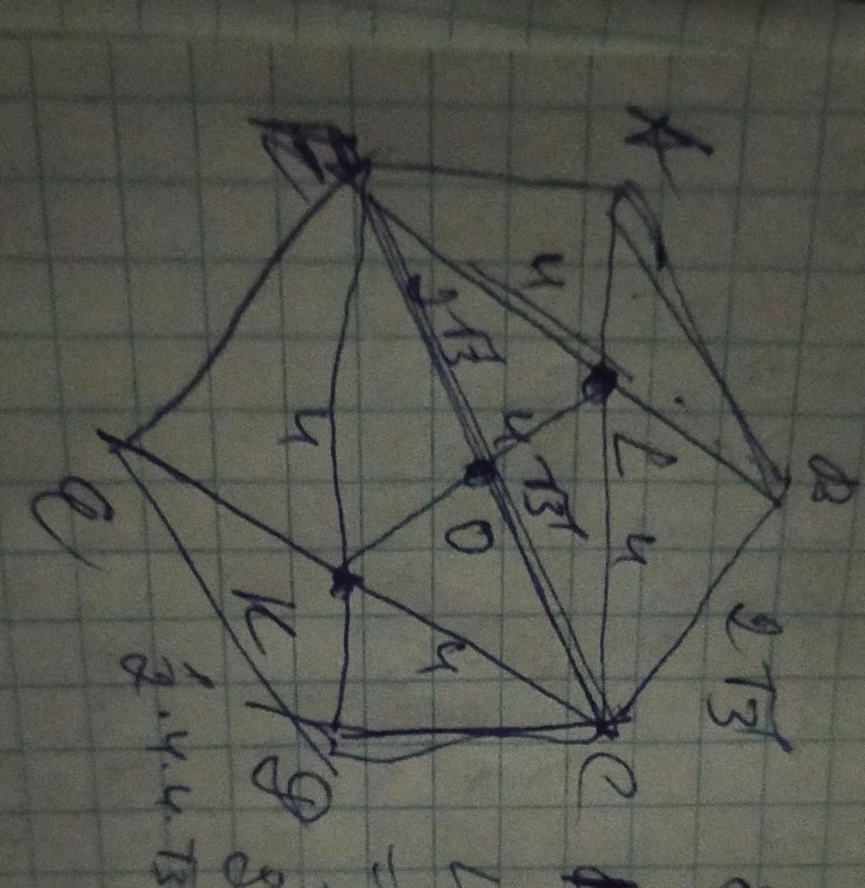 Проведём большую диагональ FС. FС=2√3×2=4√3