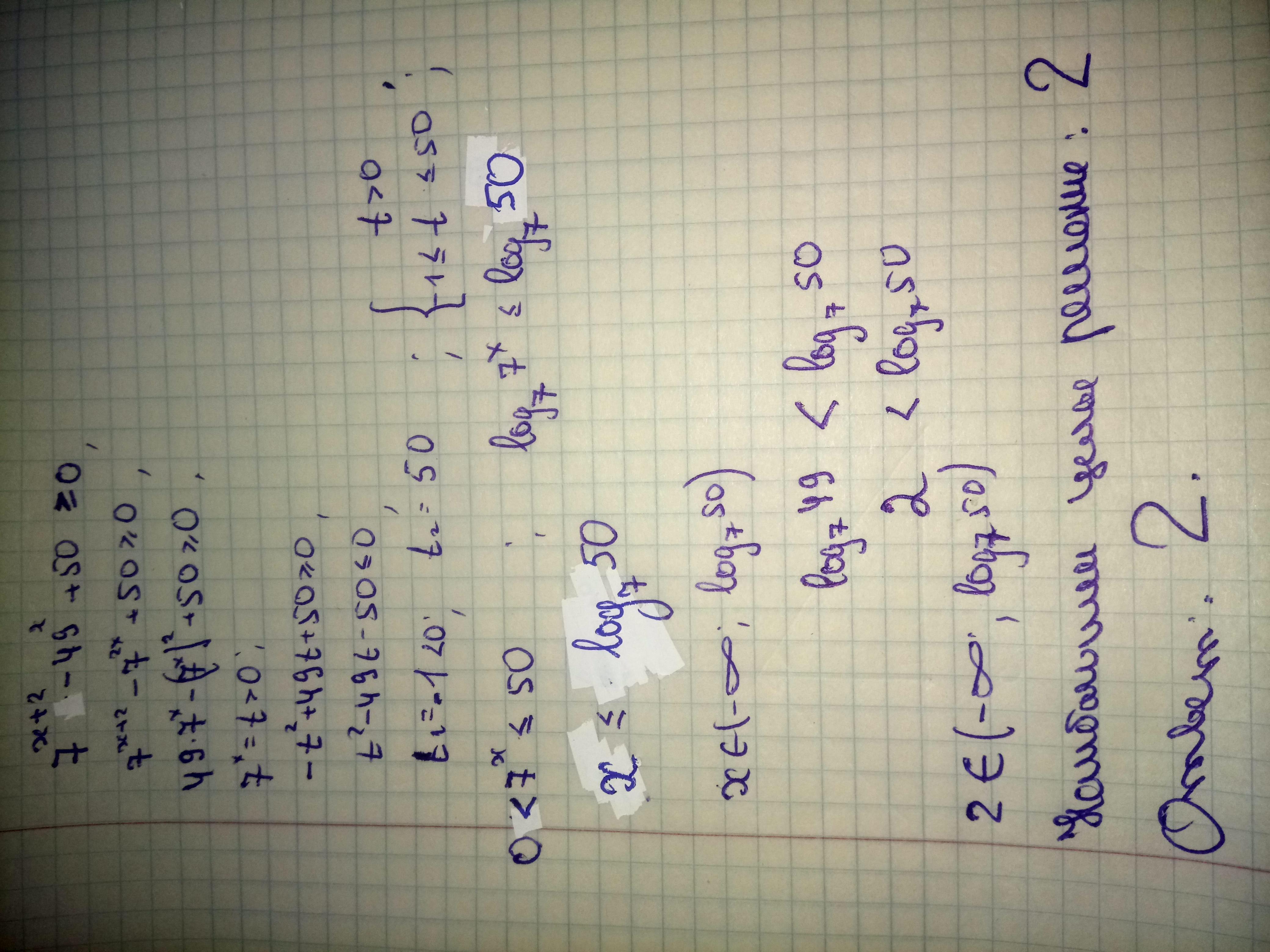 7^2 = 49 <50. 7^3 = 343 > 50. Наибольший целый x = 2