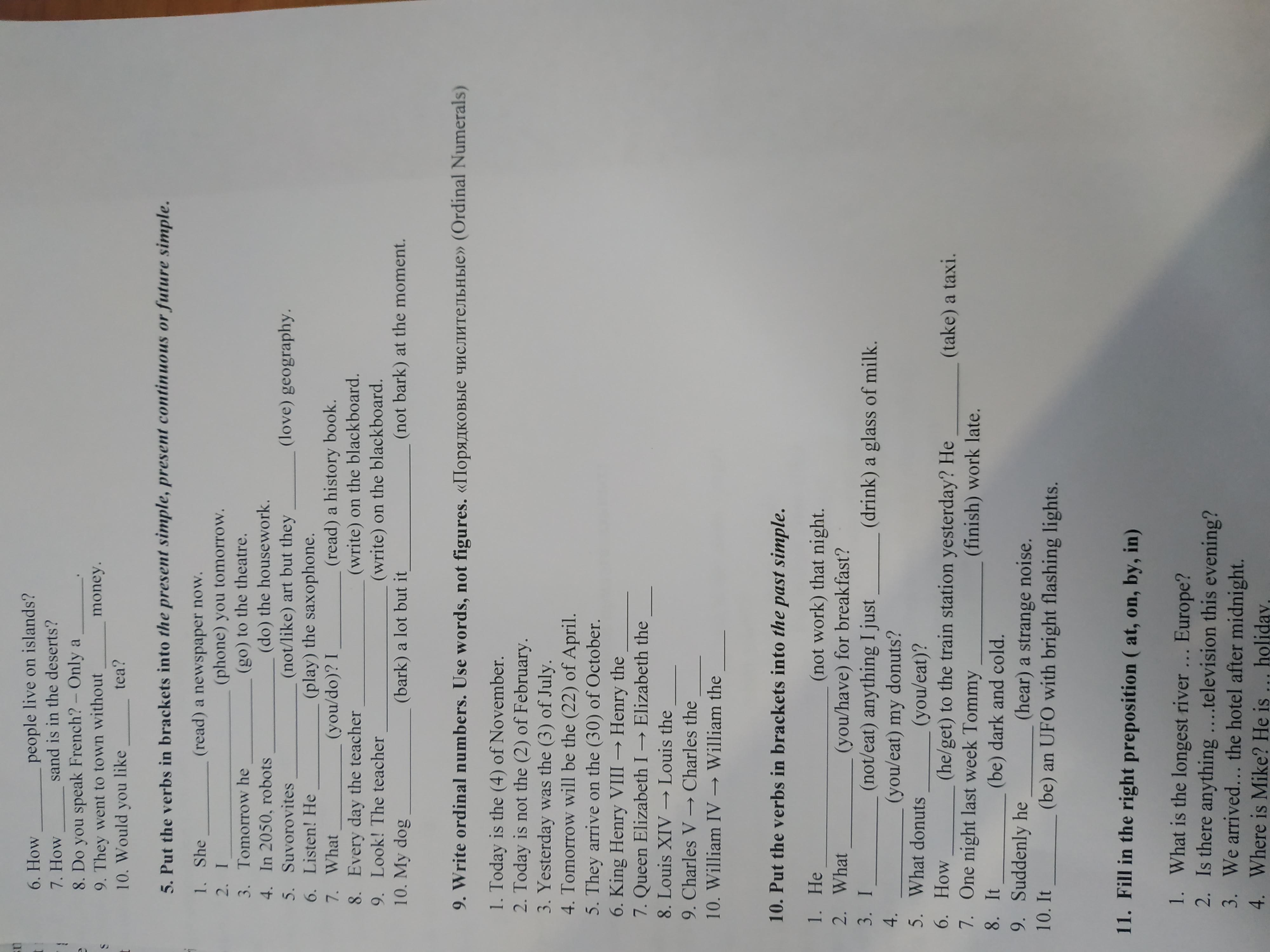 She is reading a newspaper now. I will phone you tomorrow.Tomorrow he will go to the theatre.In 2050, robots will do the housework.