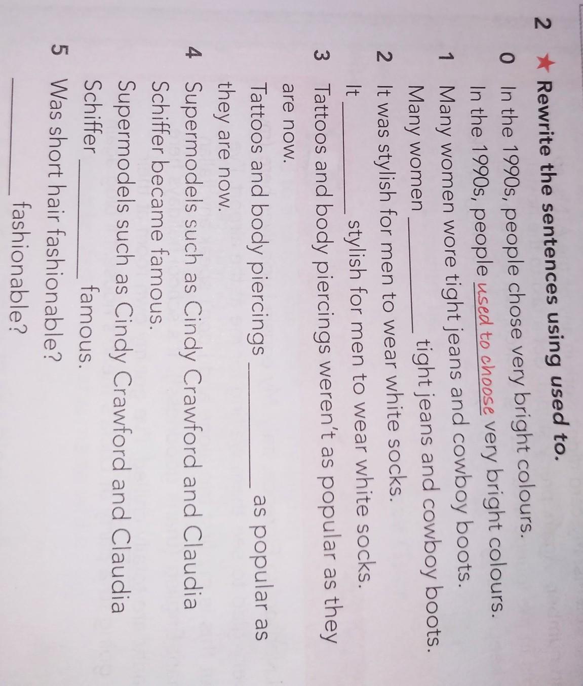 помогите пожалуйста сделать 2 упражнение чтобы было правильно в этом упражнении надо употребить used to и поставить глагол в нужную форму как в первом образце