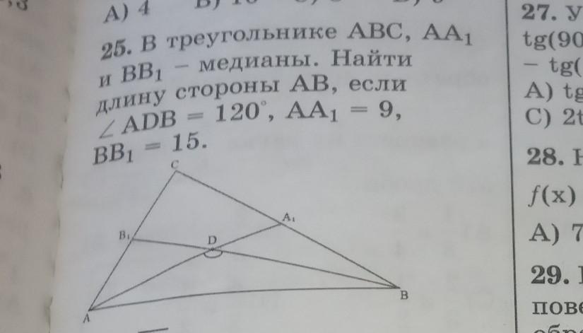 1. При пересечении медианы делятся в отношении 2:1, следовательно AM=6, BM=10, MA1=3, MB1=5