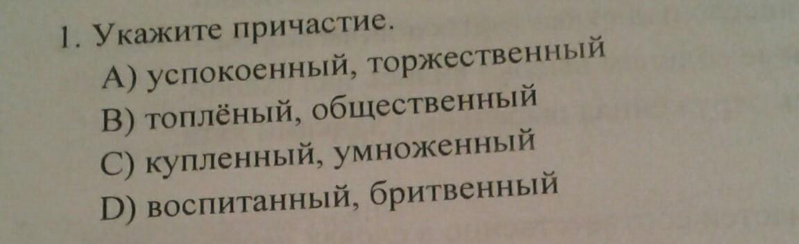 В других вариантах ответа есть прилагательные, а в С - только причастия ((что сделанный? какой?) купленный, умноженный)