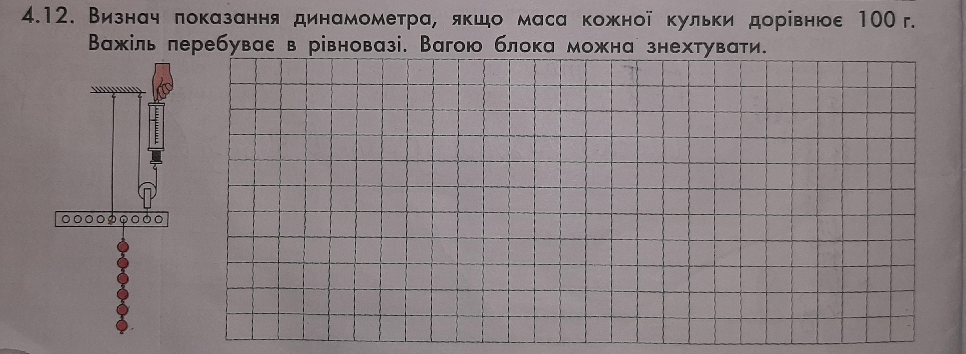 Визнач показання динамометра, якщо маса кожної кульки дорівнює 100 г. Важіль перебуває в рівновазі. Вагою блока можна знехтувати. (Малюнок прикріплено) даю 30 баллов!!!!!!