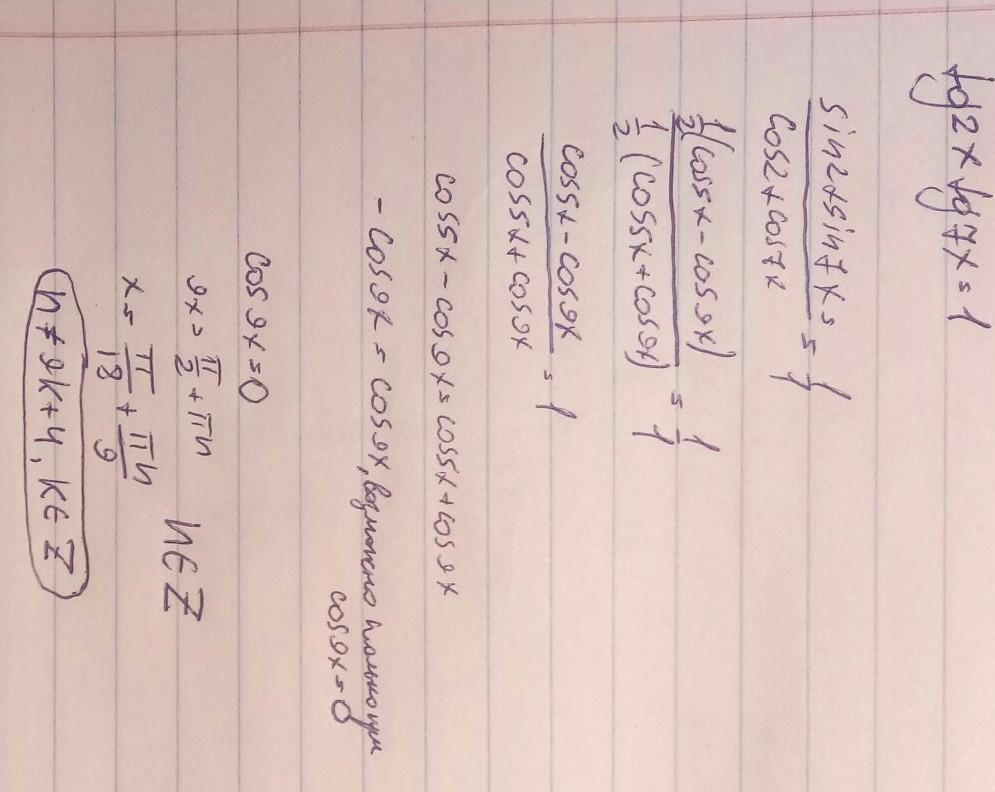 cos 2x ≠ 0 и cos 7x ≠ 0
