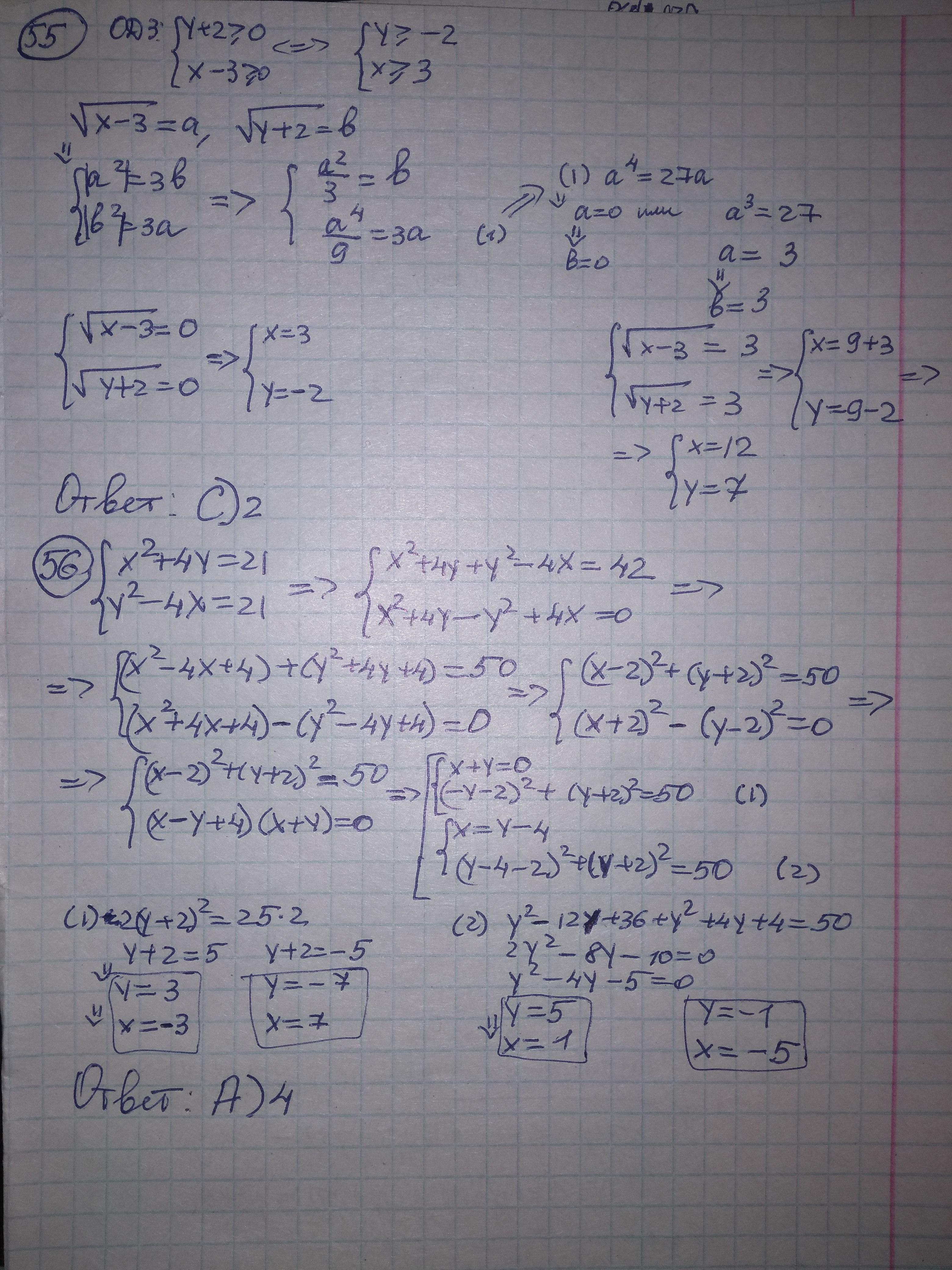 y55)y56) Сколько пар действительных чисел (x; y) удовлетворяют систему уравнений ...