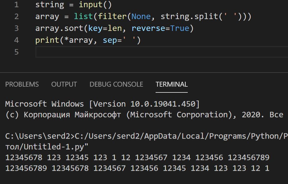 print(sorted(input().split(),reverse=True, key=len))